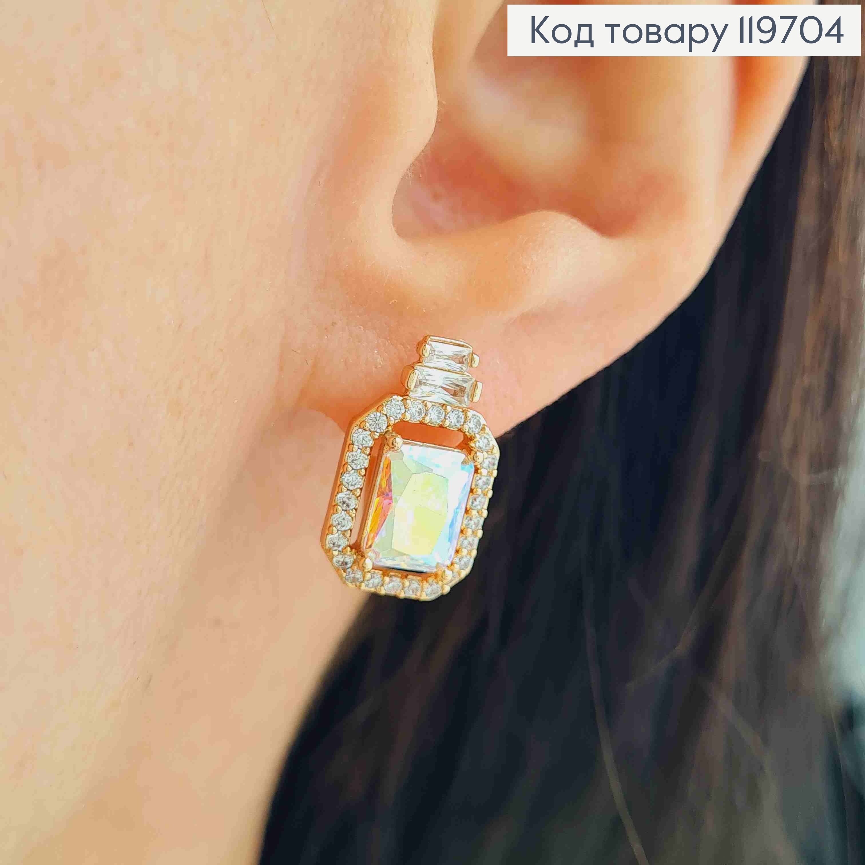 Серьги кольца "Прямоугольные" украшены Блестящими камешками, длиной 2,4см, застежка заколка, Xuping 18К 110199 фото