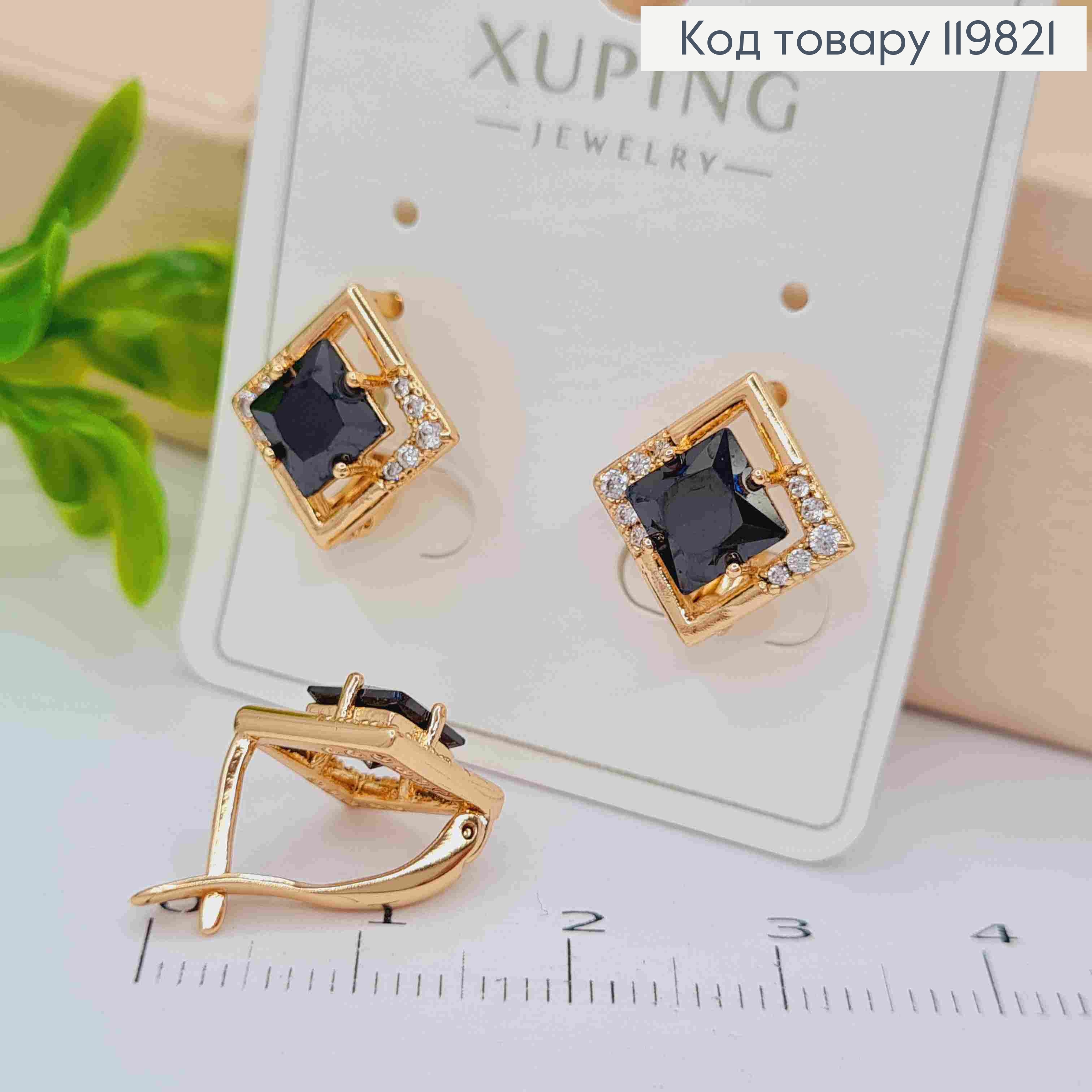 Серьги с изысканным Черным камнем, 1,4см, английская застежка, XUPING 18K