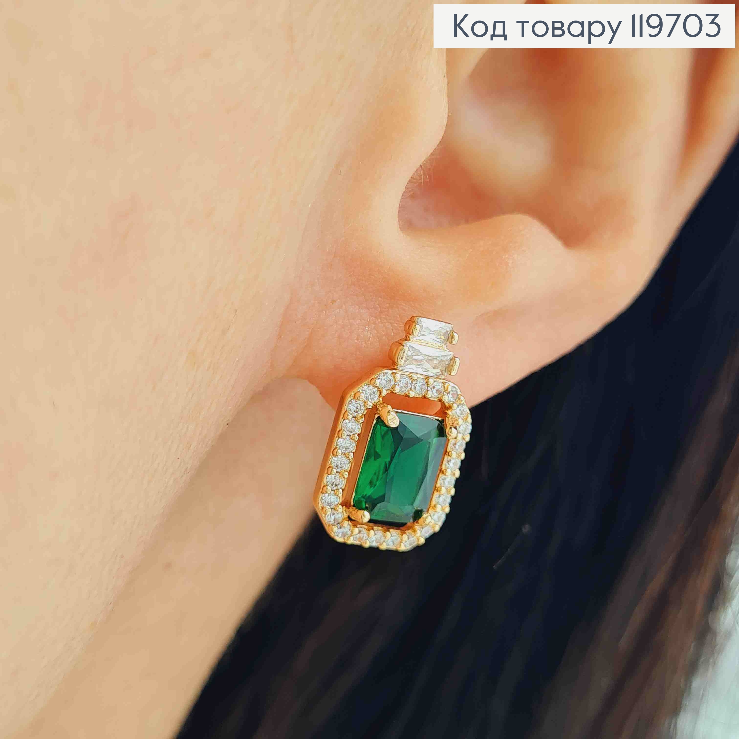 Серьги с изысканным Зеленым камнем в оправе из камешков, дл. 1,7см, англ. застежка, Xuping 18К