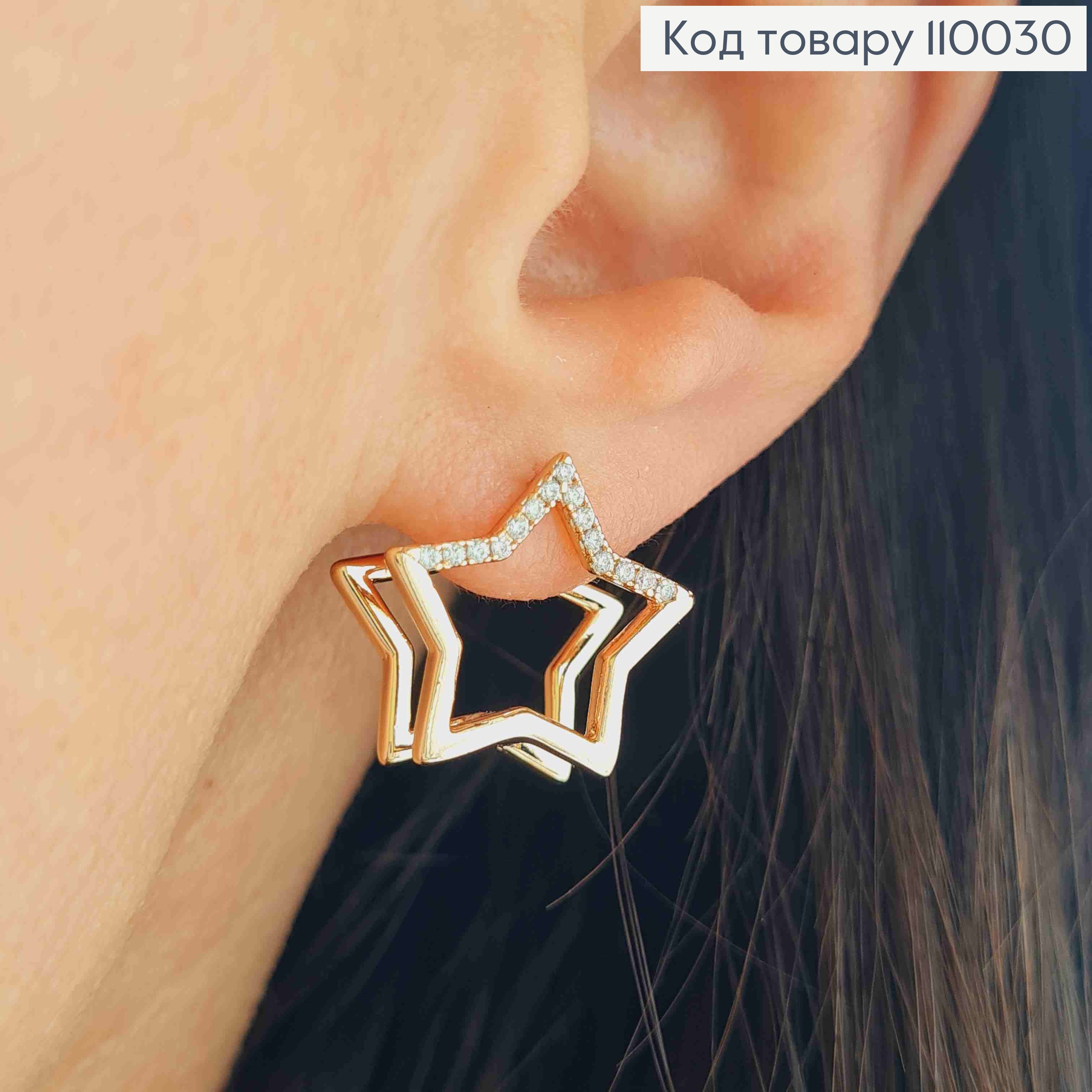 Серьги "Звездочки" украшены блестящими камешками, длина 1,5см, итальянская застежка, Xuping 18К.
