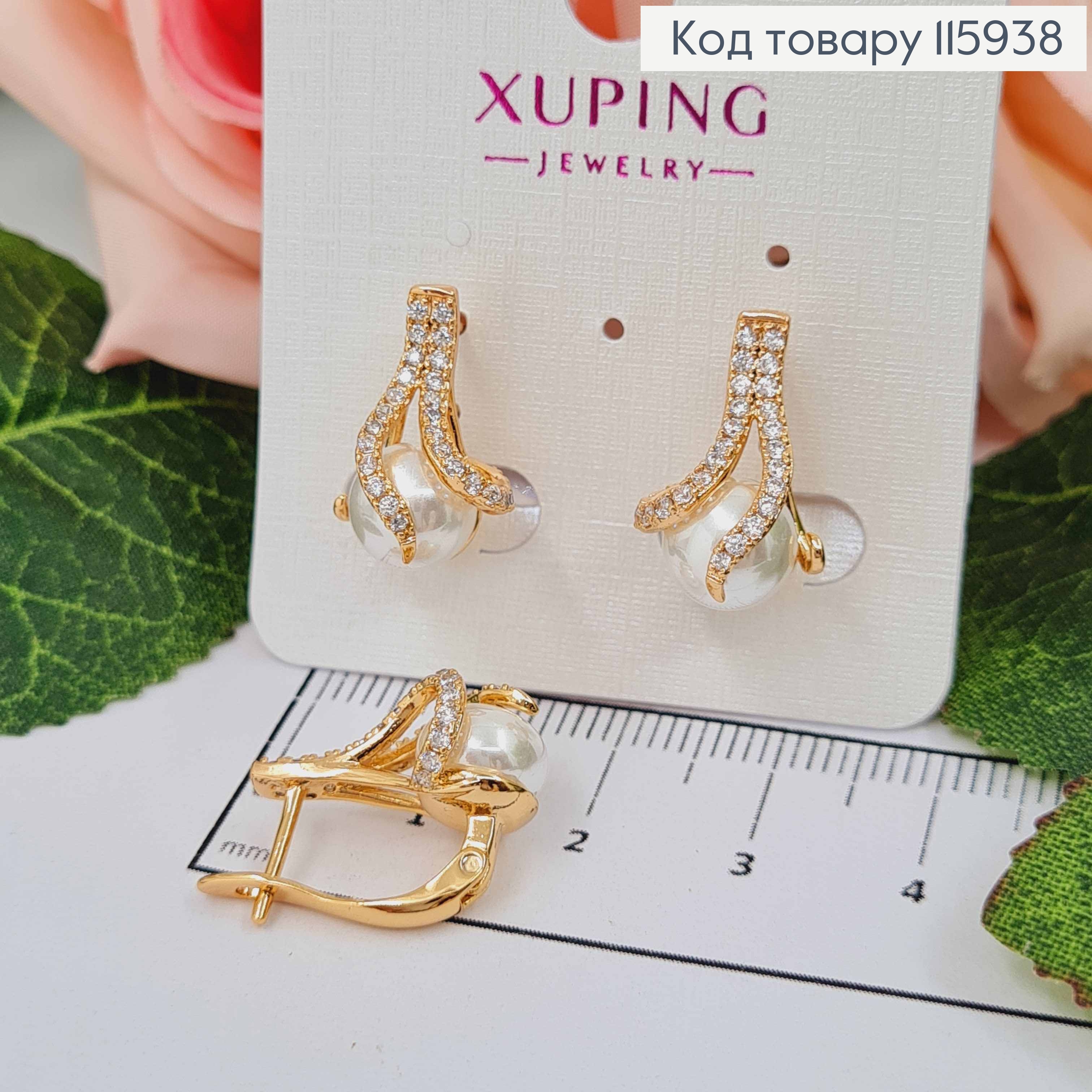 Серьги "Золотые корни" в камешках, с жемчужиной англ. зам. Xuping 18K