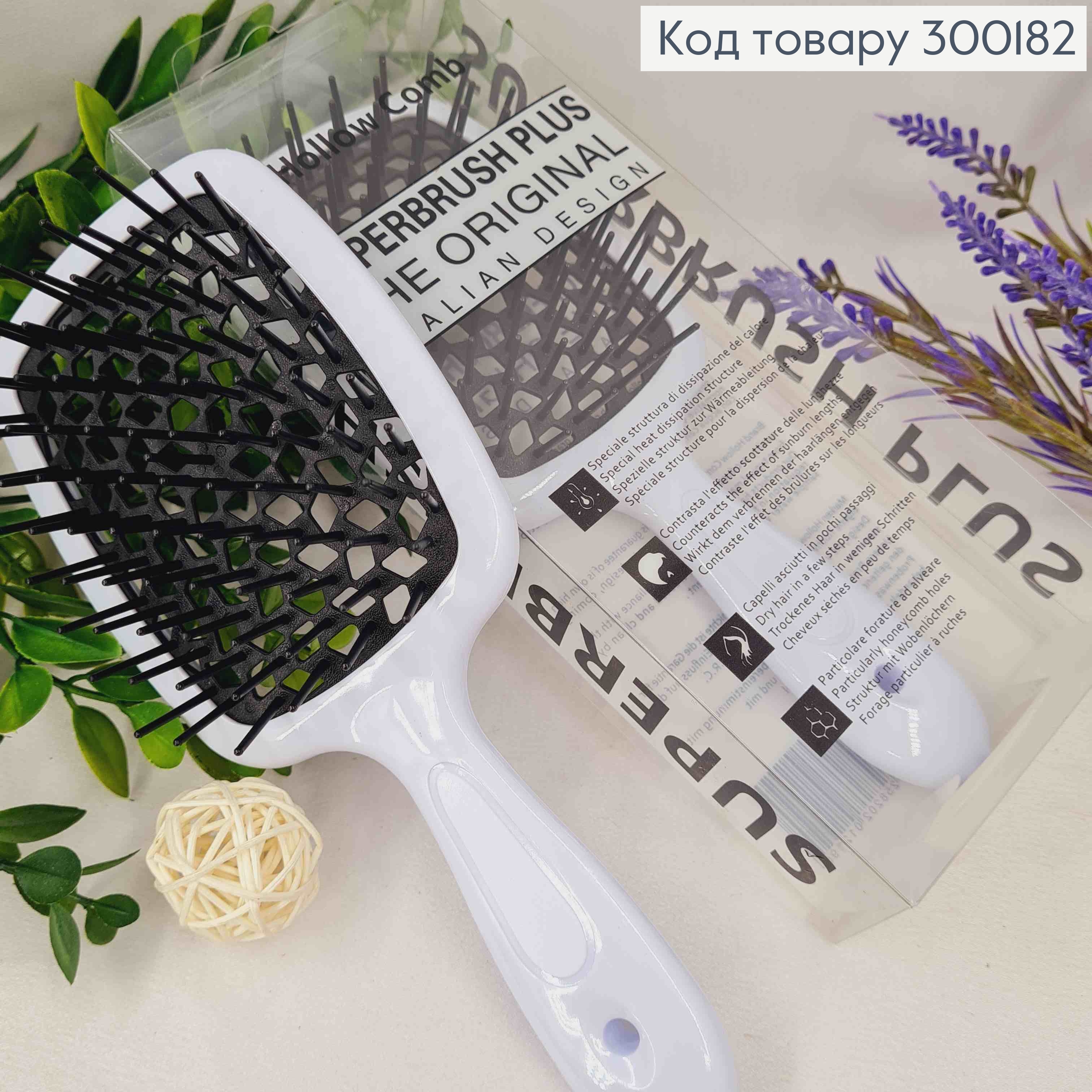 Щетка для волос прямоугольная Белая с Черным, "HollowComb" Superbrush Plus, 20,5*8см