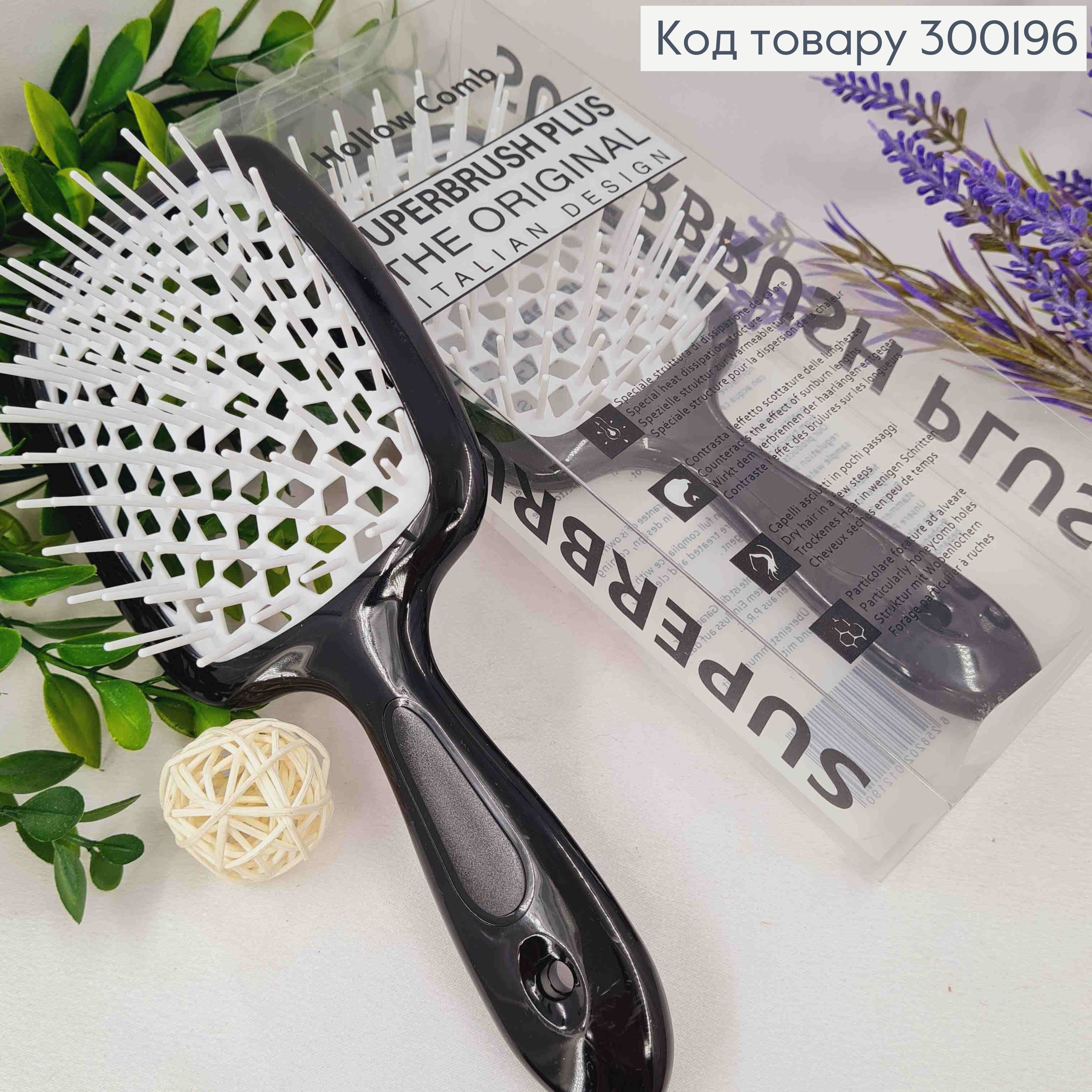Щетка для волос прямоугольная Черная с Белым, "HollowComb" Superbrush Plus, 20,5*8см