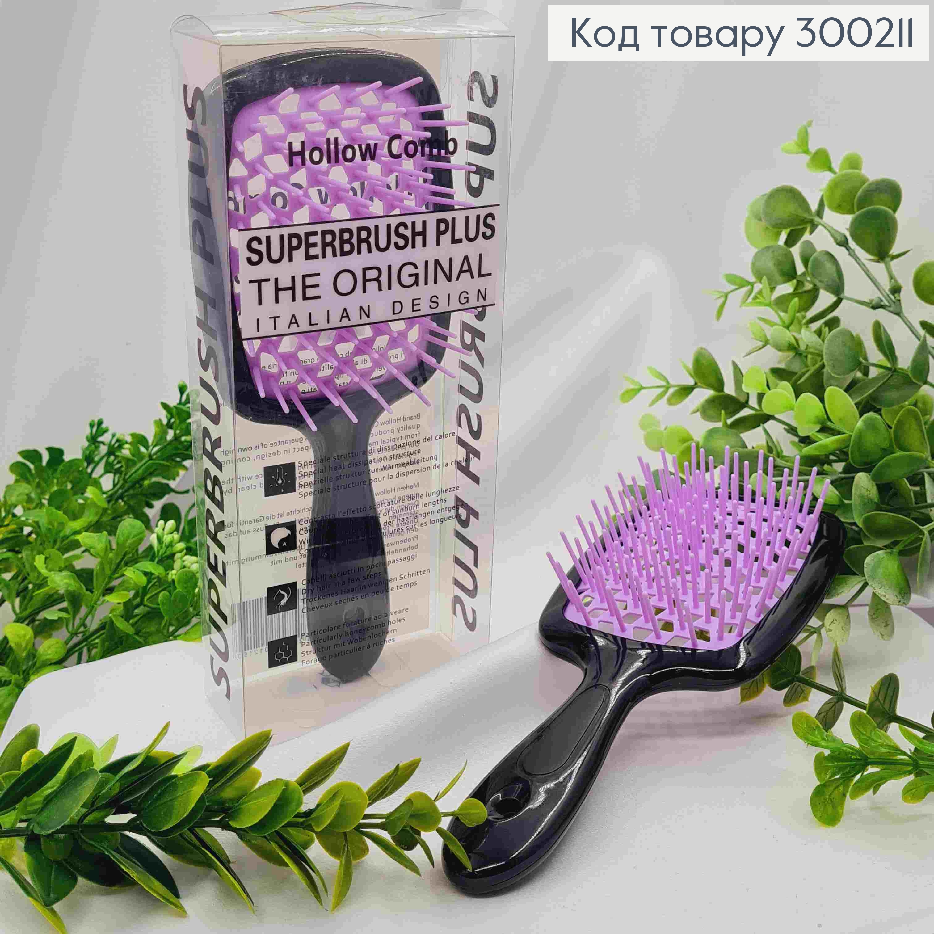 Набор: щетка для волос Фиолетовая с Розовым + Фиолетовый гребень, "HollowComb" Superbrush, 20,5*8см 300220 фото