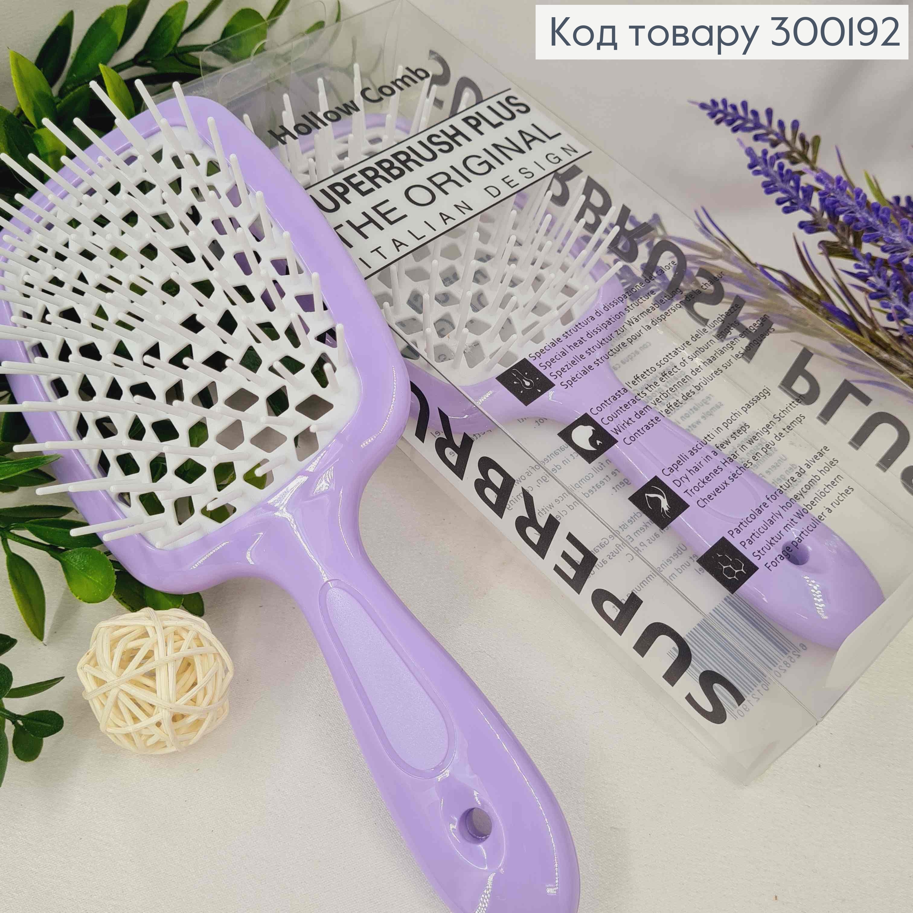 Щетка для волос прямоугольная Фиолетовая с Белым, "HollowComb" Superbrush Plus, 20,5*8см