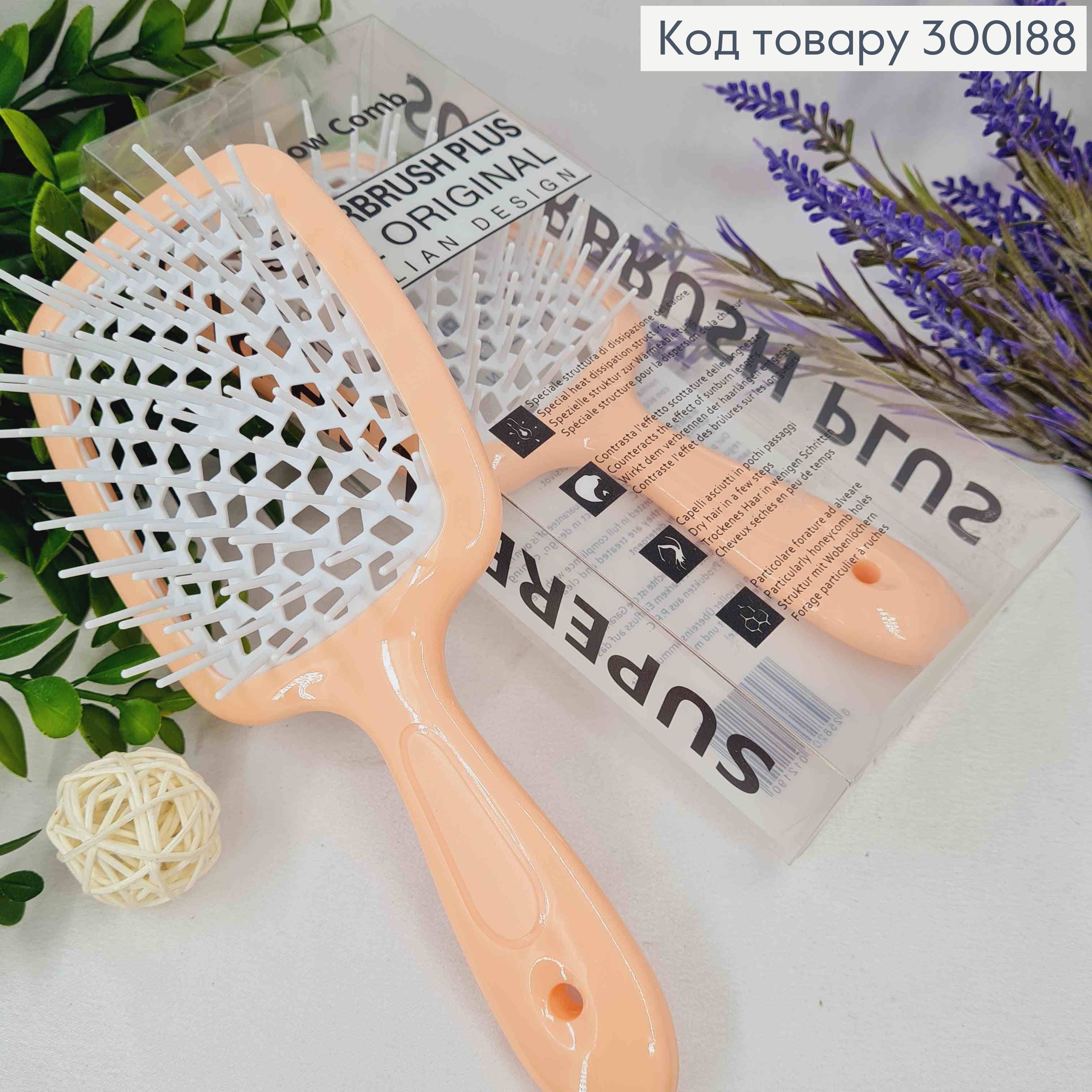 Щетка для волос прямоугольная Персиковая с Белым, "HollowComb" Superbrush Plus, 20,5*8см