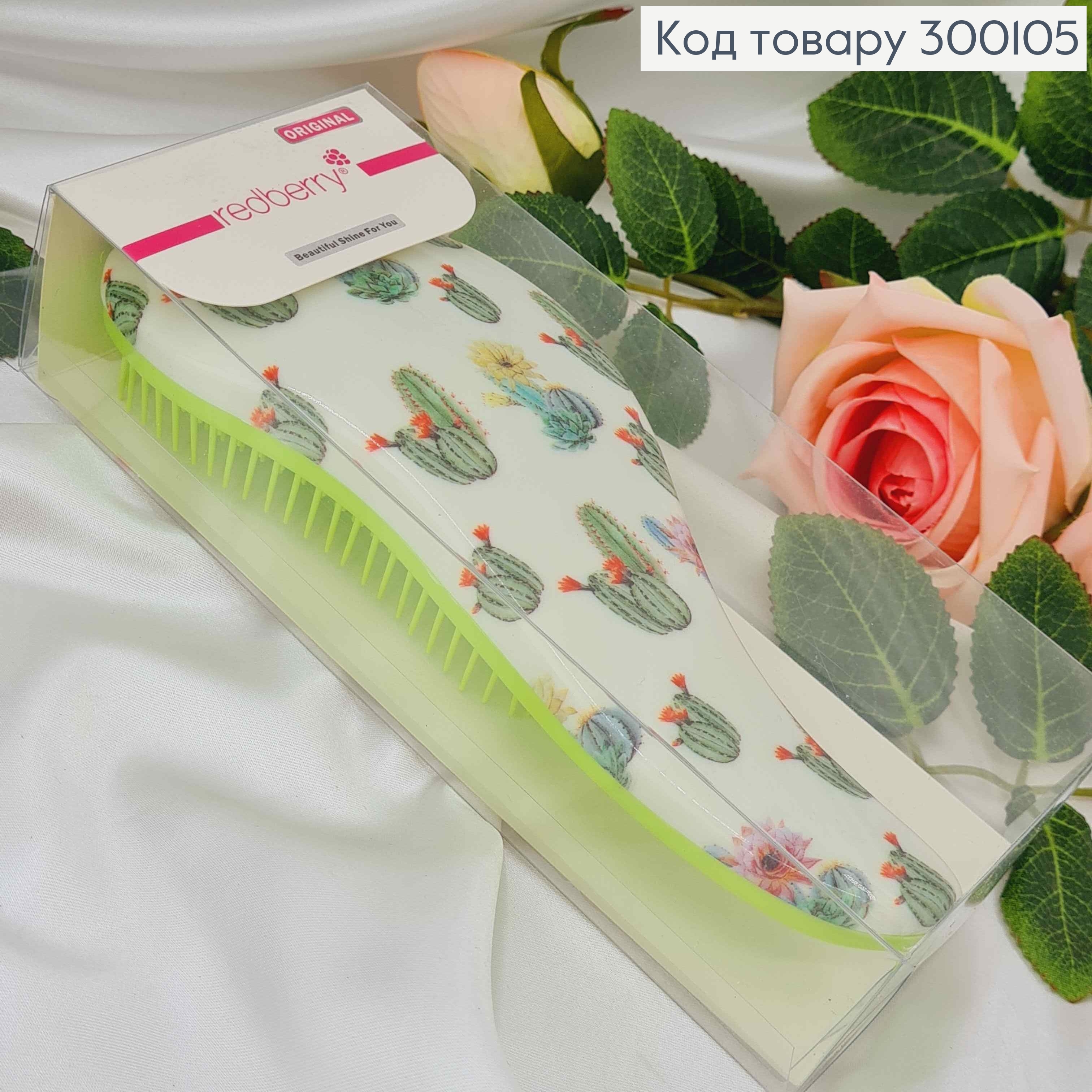 Щетка для волос, Redberry (тангл тизер), Салатовая с Кактусами, средняя(19*8), качественный Китай