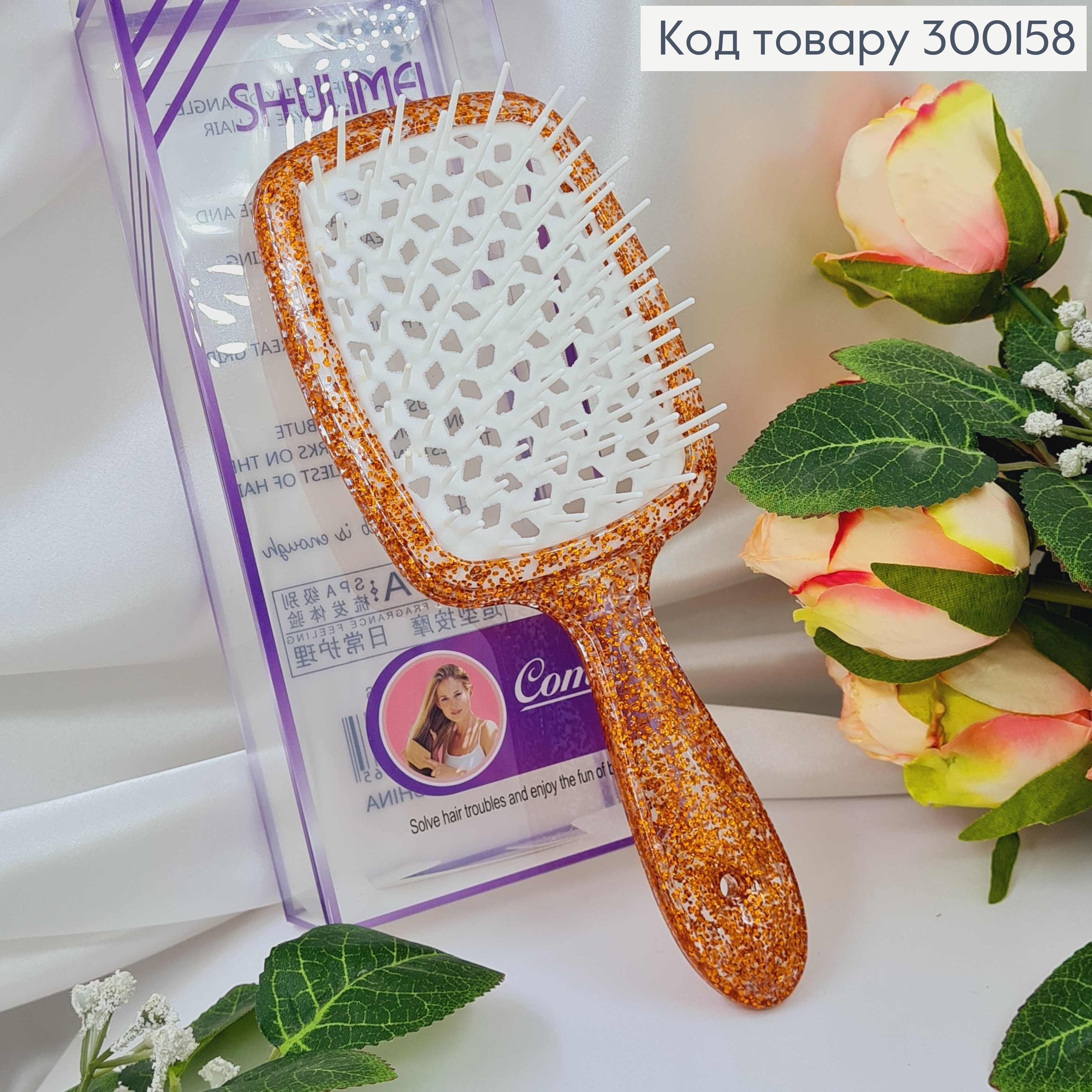 Щетка для волос, "Shulimei" Superbrush, Прозрачная с Оранжевыми блестками, 20*8см