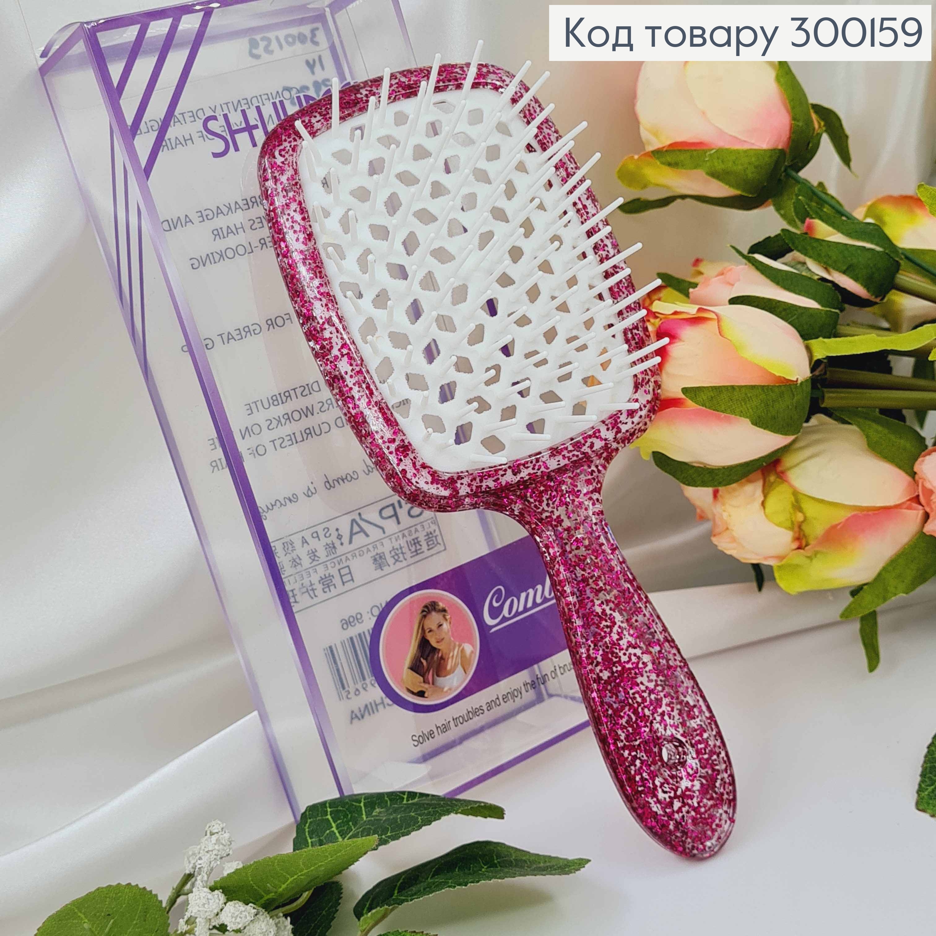 Щетка для волос, "Shulimei" Superbrush, Прозрачная с Розовыми блестками, 20*8см