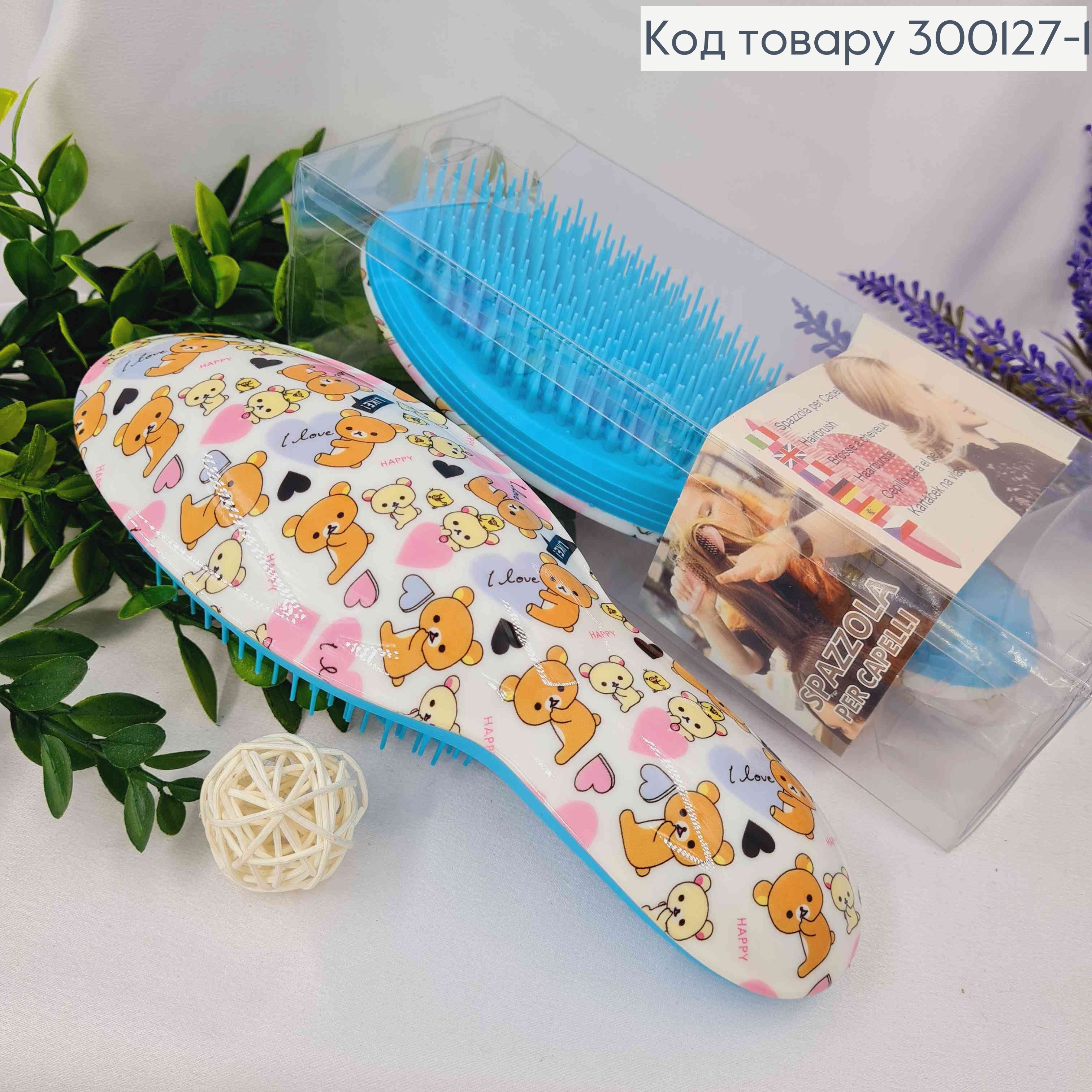 Щетка для волос, Spazzola (тангл тизер), Синяя с Мишками, большая(21*8), качественный Китай