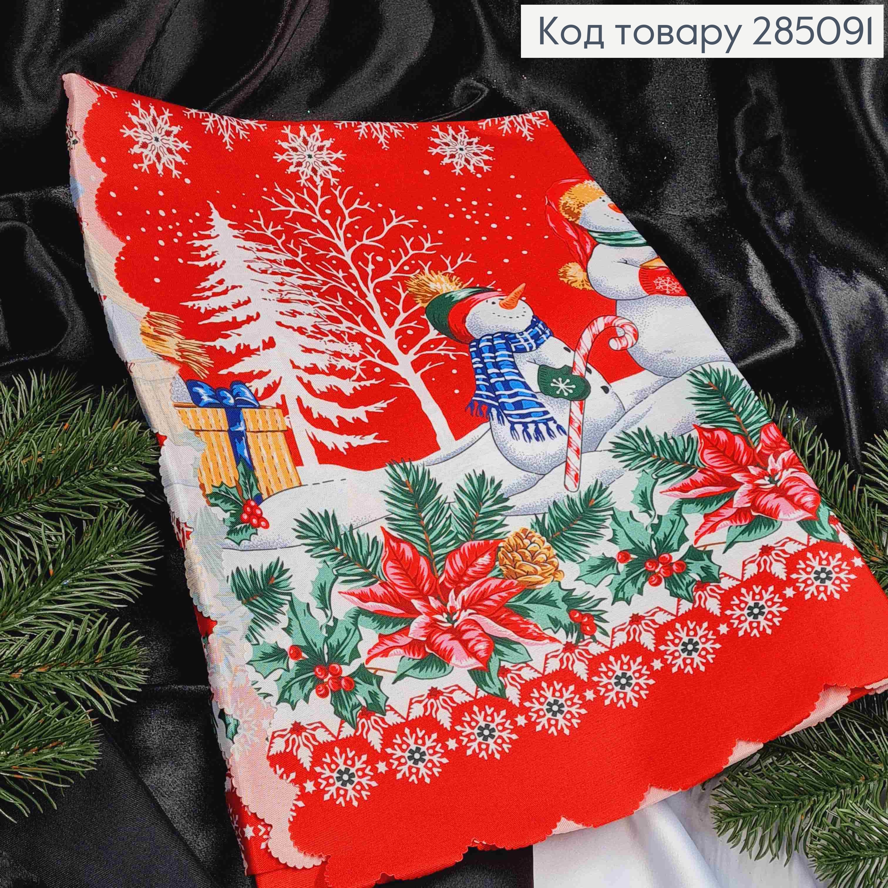 Скатетина Красная "Новогодний мотив. Снеговички", размер 110*150см 285082 фото