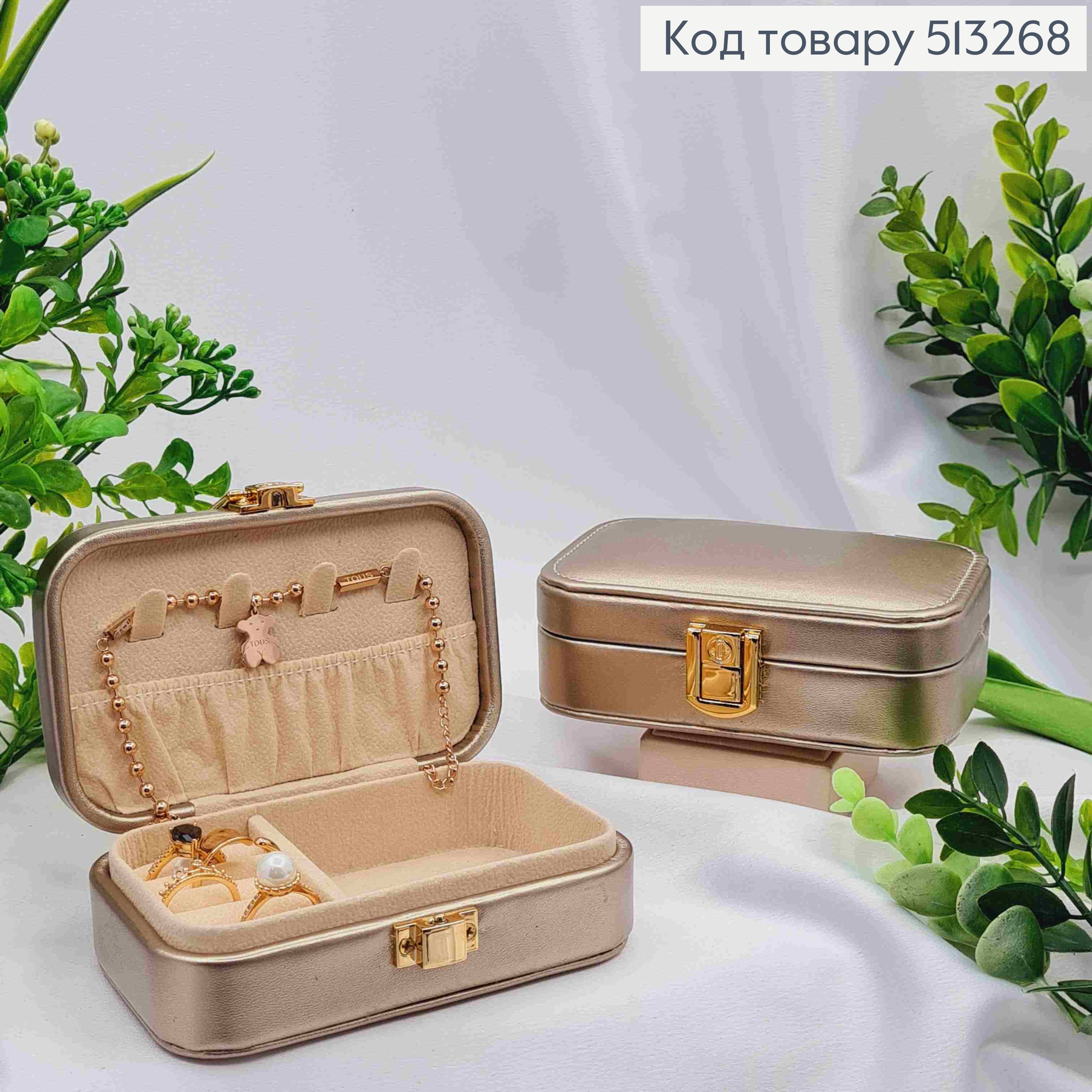 Сундучок-органайзер для хранения украшений, Золотистого цвета, 14,5*10*4,5см (на кнопке) 513271 фото
