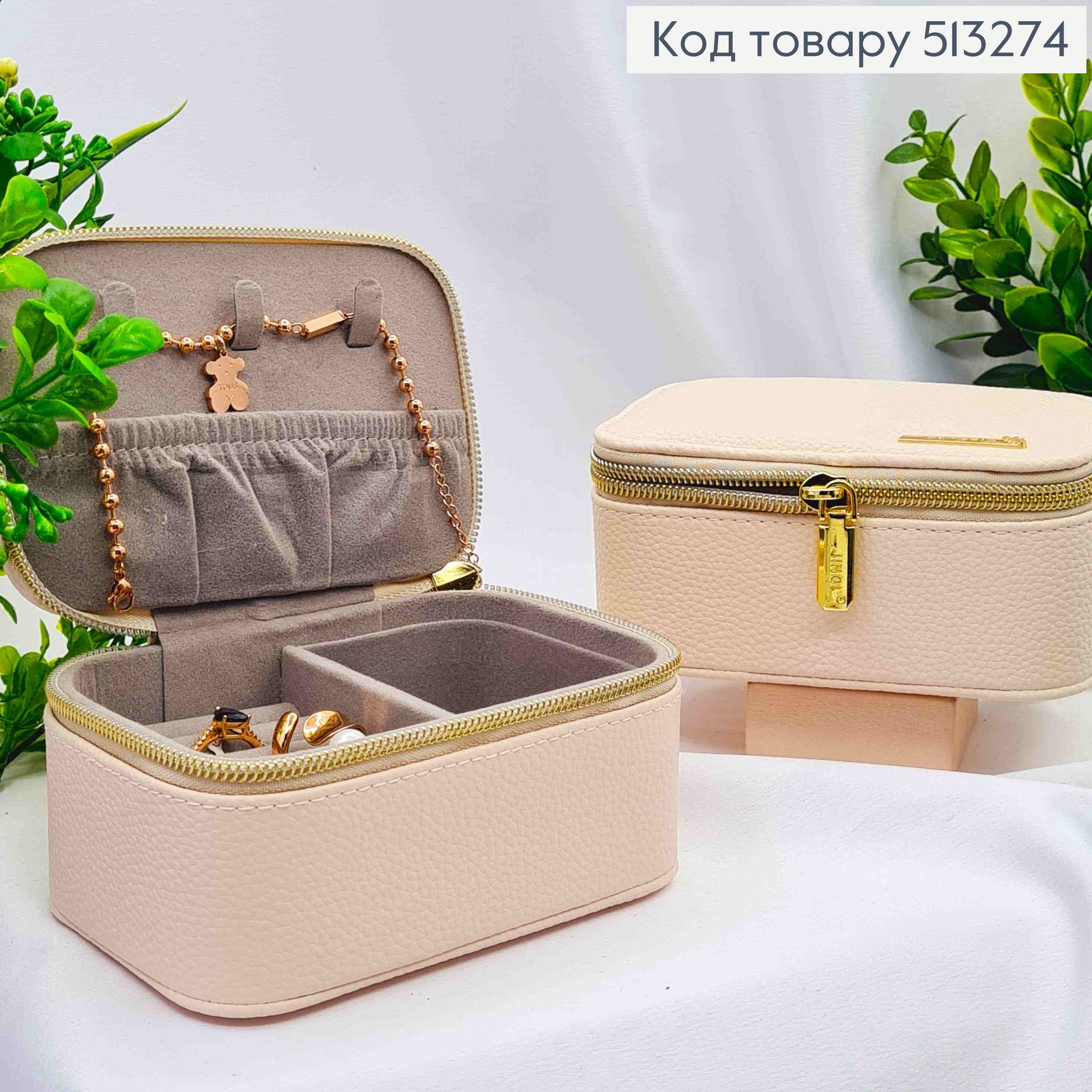 Сундучок-органайзер для хранения украшений, Кремового цвета, 10*9,5*5см (на кнопке) 513276 фото
