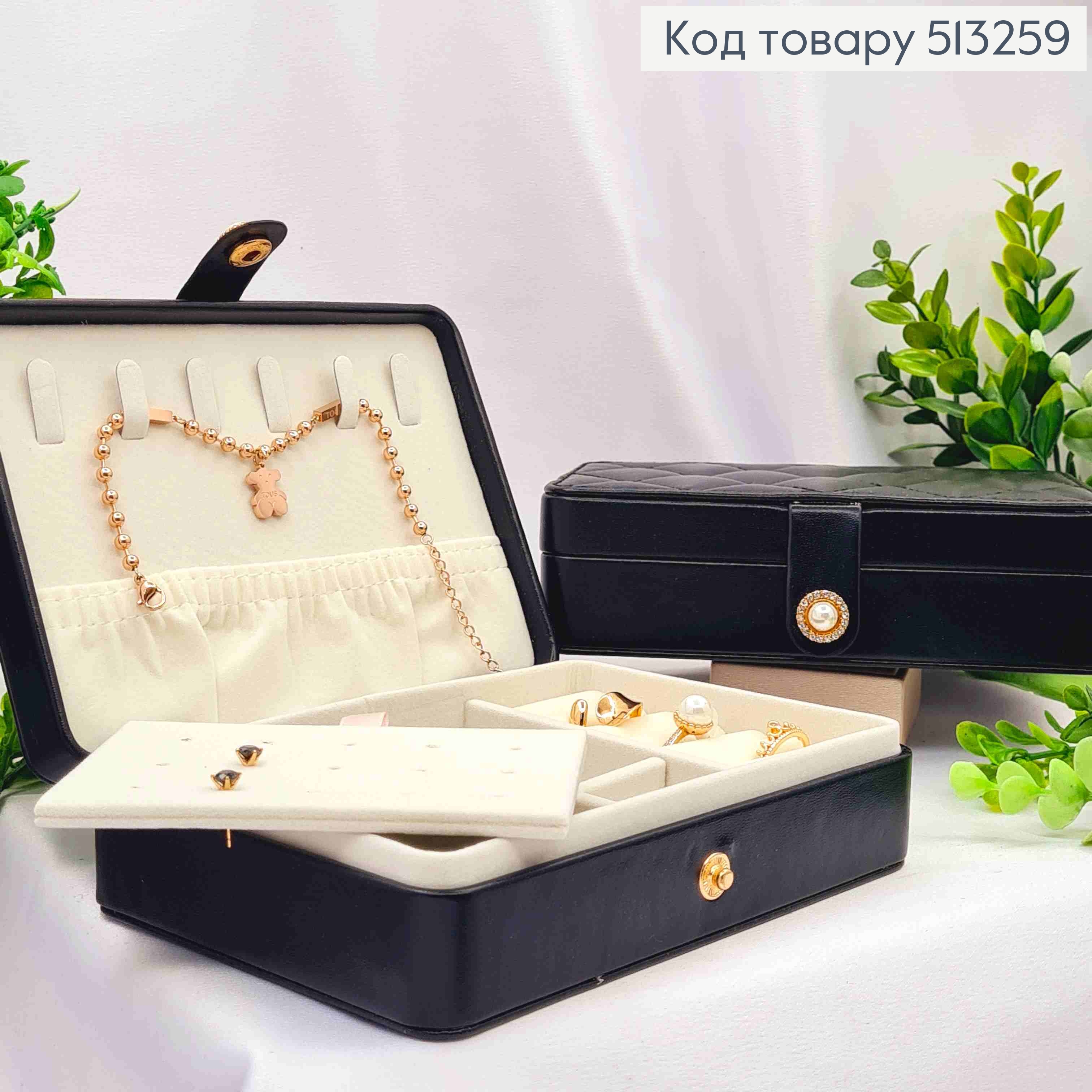 Сундучок-органайзер для хранения украшений, Кремового цвета, 10*9,5*5см (на кнопке) 513276 фото