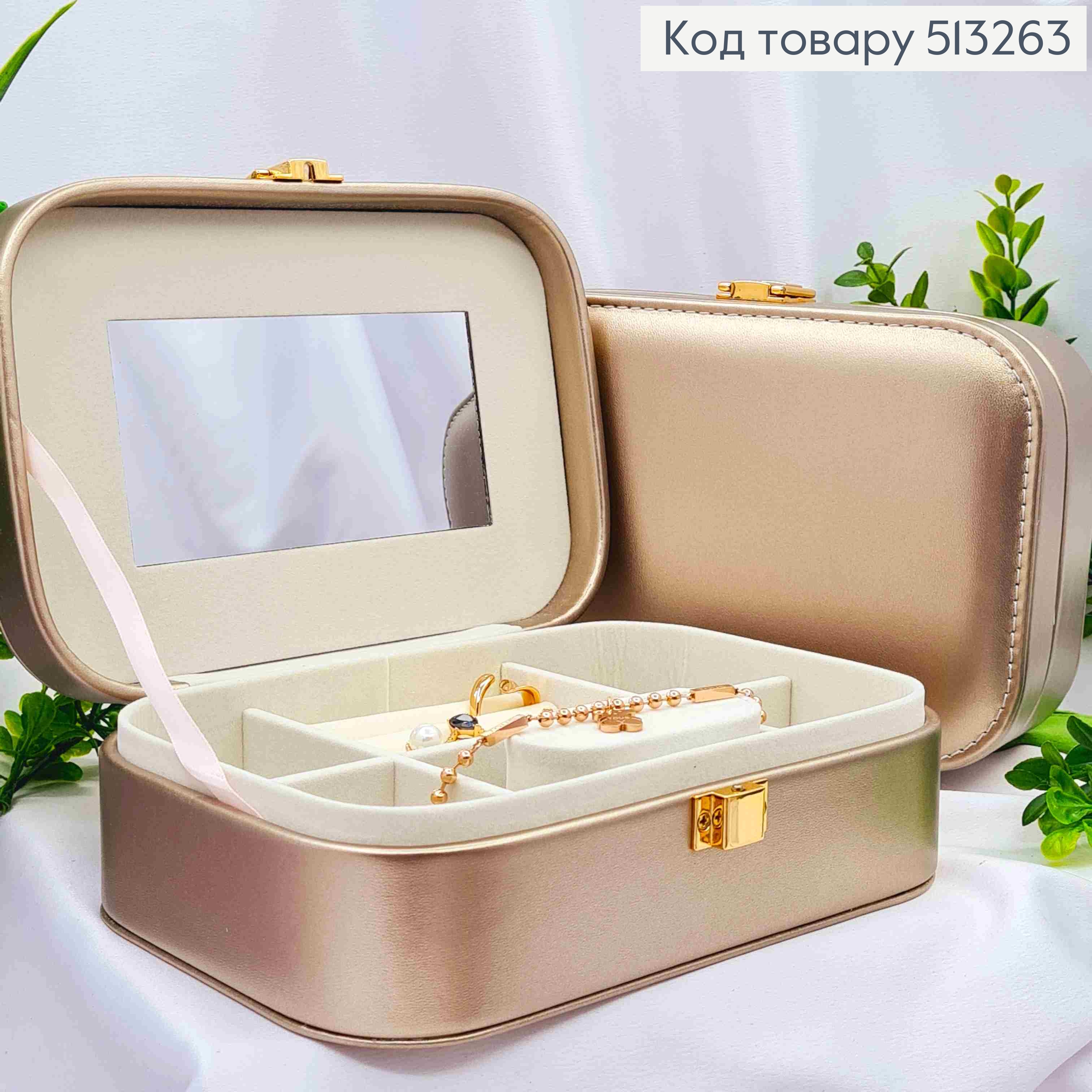Сундучок-органайзер для хранения украшений, Кремового цвета, 10*9,5*5см (на кнопке) 513276 фото