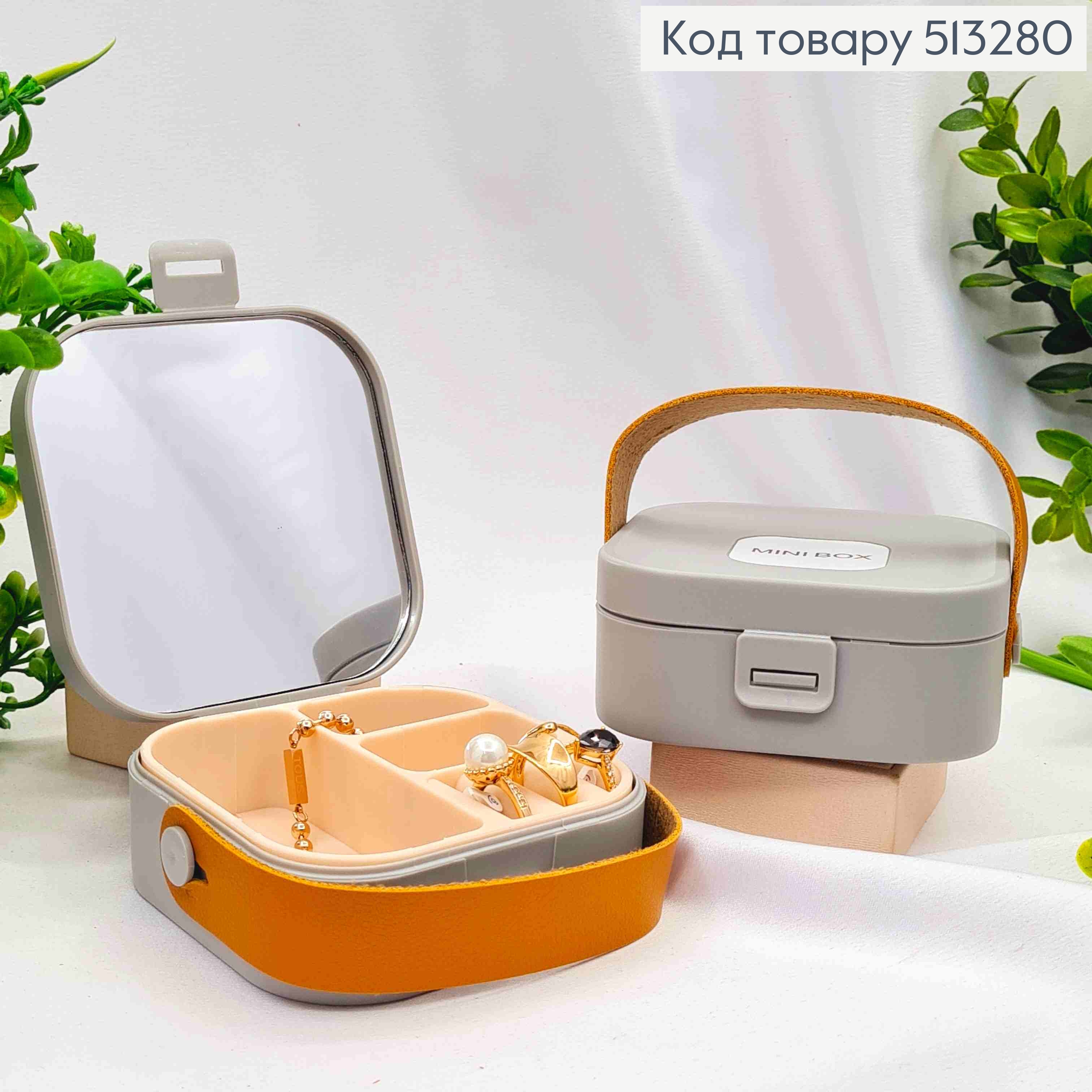 Сундучок-органайзер для хранения украшений, Серого цвета (пластик), 9*9*4см, (на кнопке)