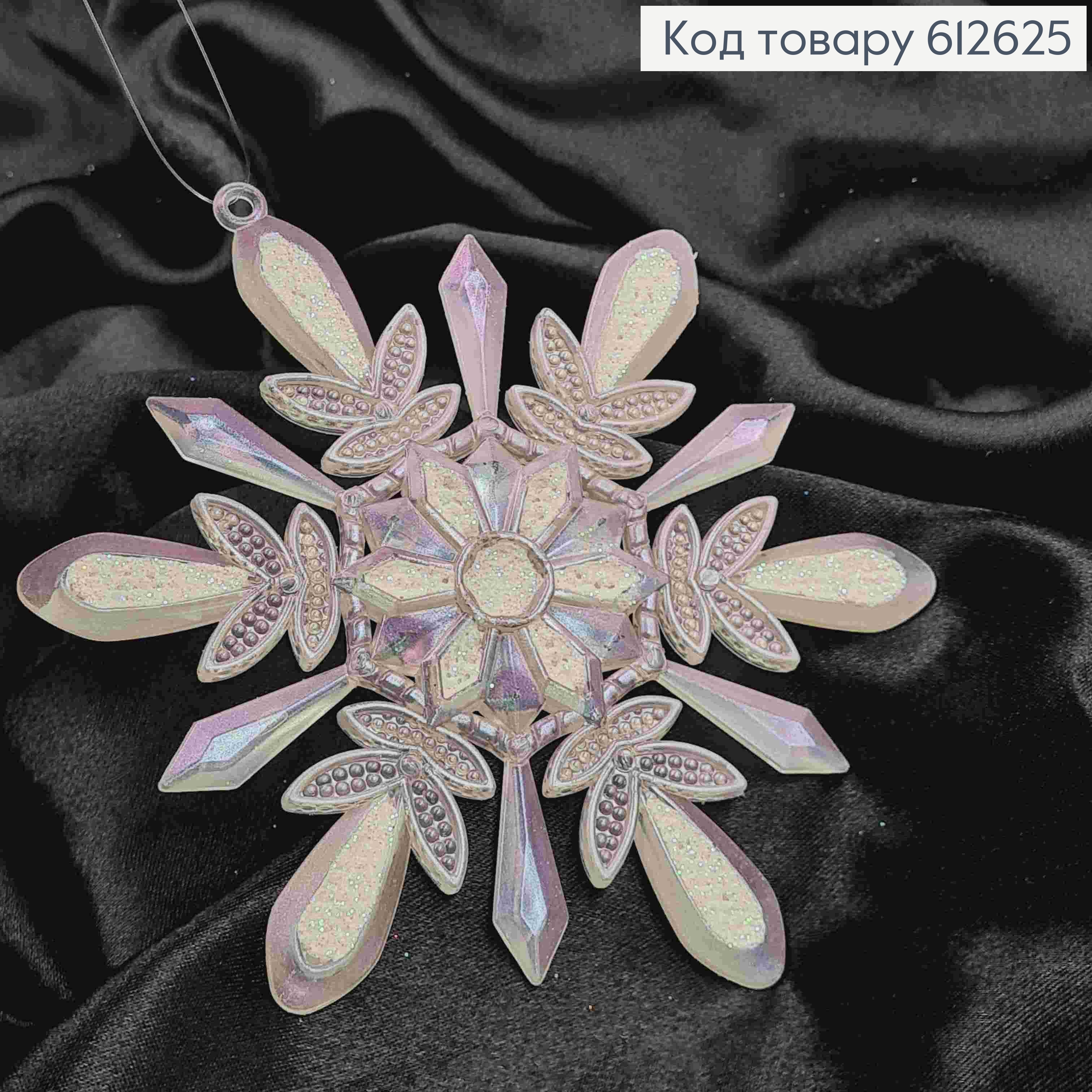 Фигурка Снежинка РОЗОВАЯ, матовая, декорированная блеском, размер 11см, пластик, Украина 612651 фото
