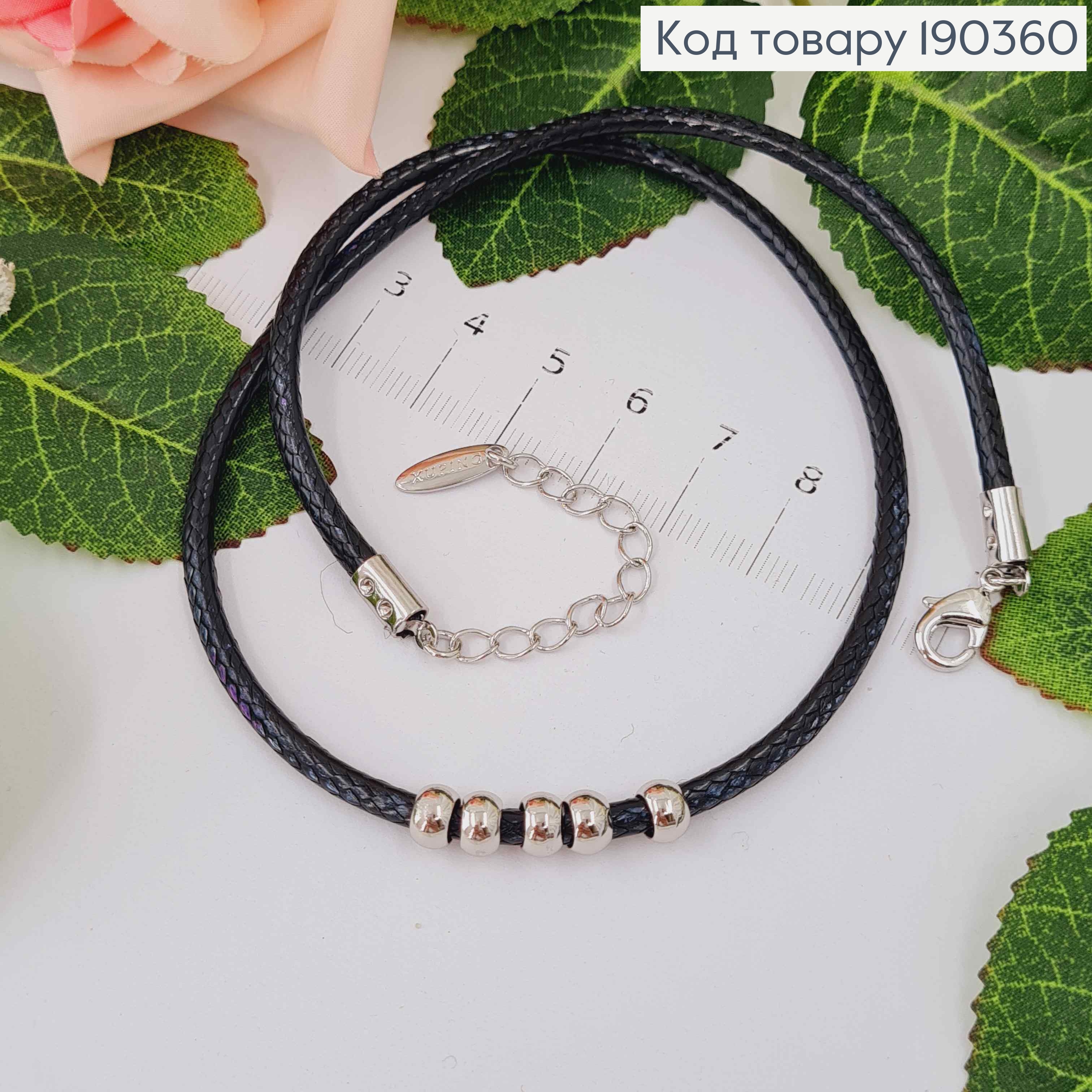 Шнур плетеный глянцевый, родимый, с пятью шармиками, дл. 40+5см, Xuping 18K