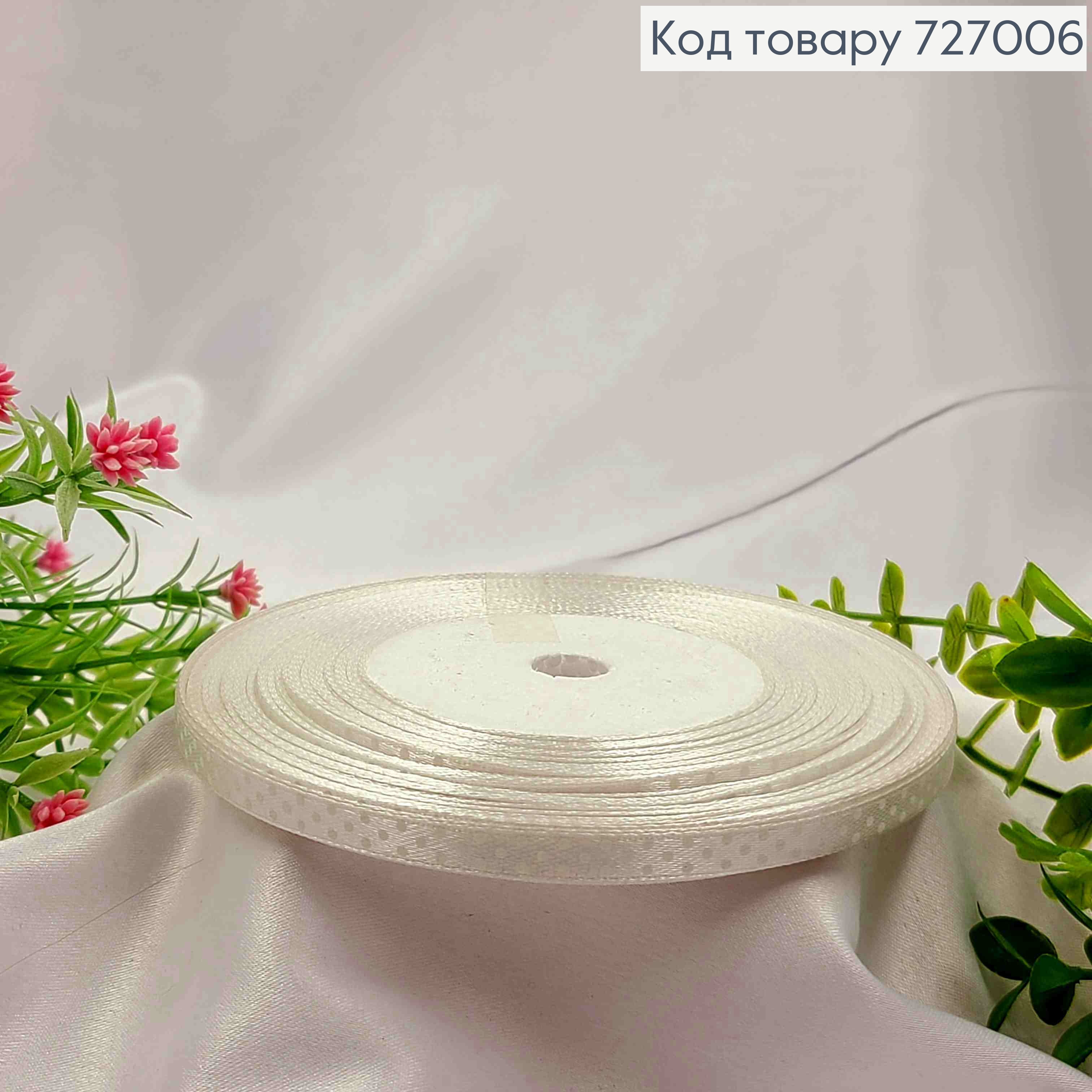 Лента атласная КРЕМОВАЯ в ГОРОШОК, ширина 2,5см, длина 50 ярдов (45м) 727019 фото
