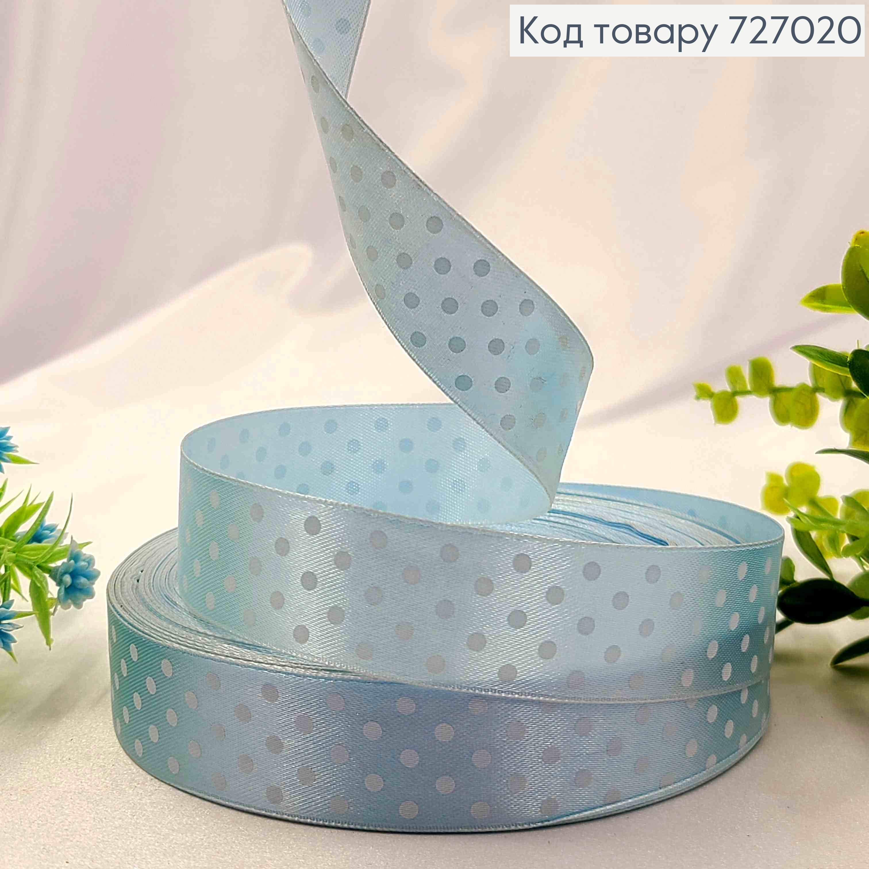 Лента атласная ГОЛУБАЯ в ГОРОШОК, ширина 2,5см, длина 50 ярдов (45м)
