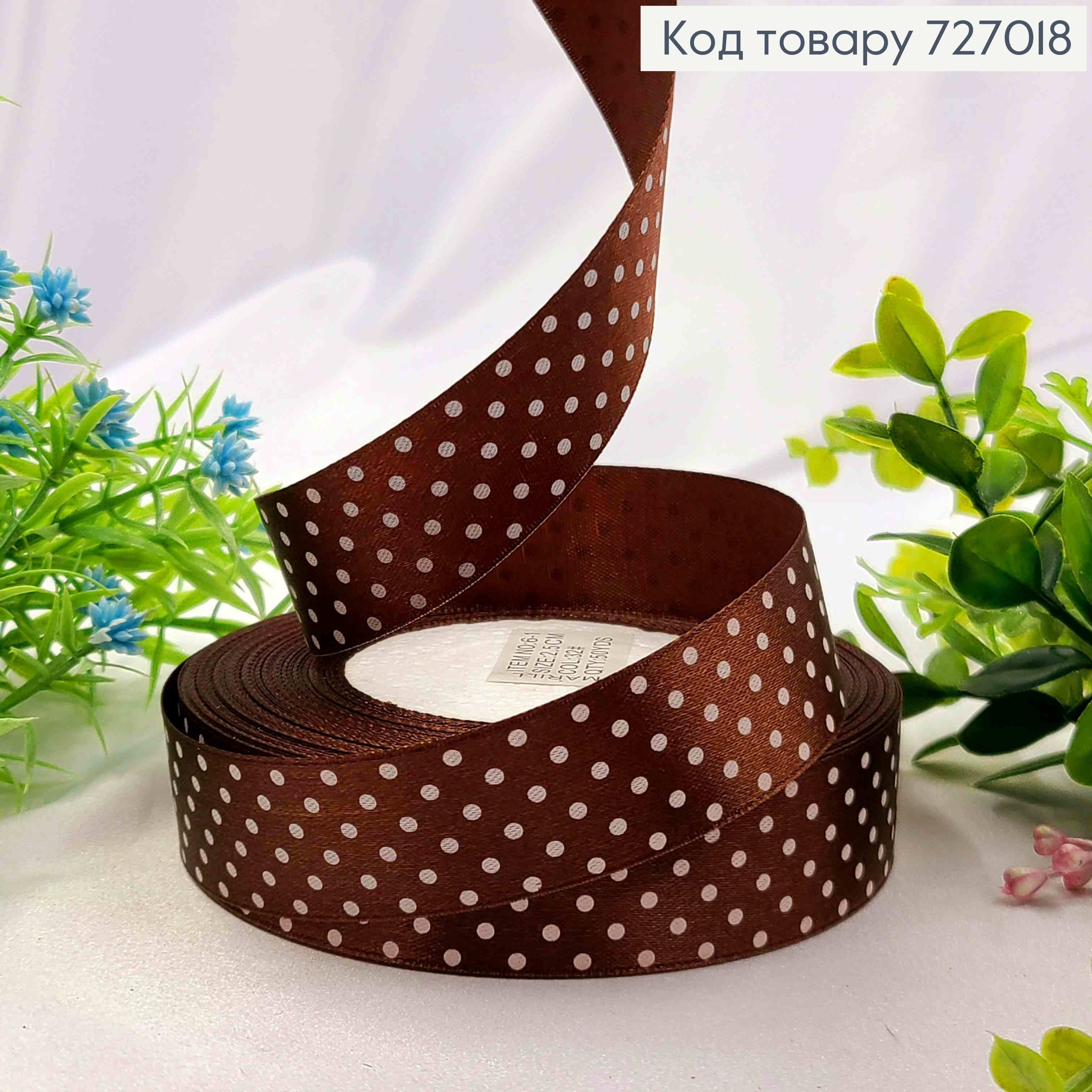 Лента атласная КОРИЧНЕВАЯ в ГОРОШОК, ширина 2,5см, длина 50 ярдов (45м)