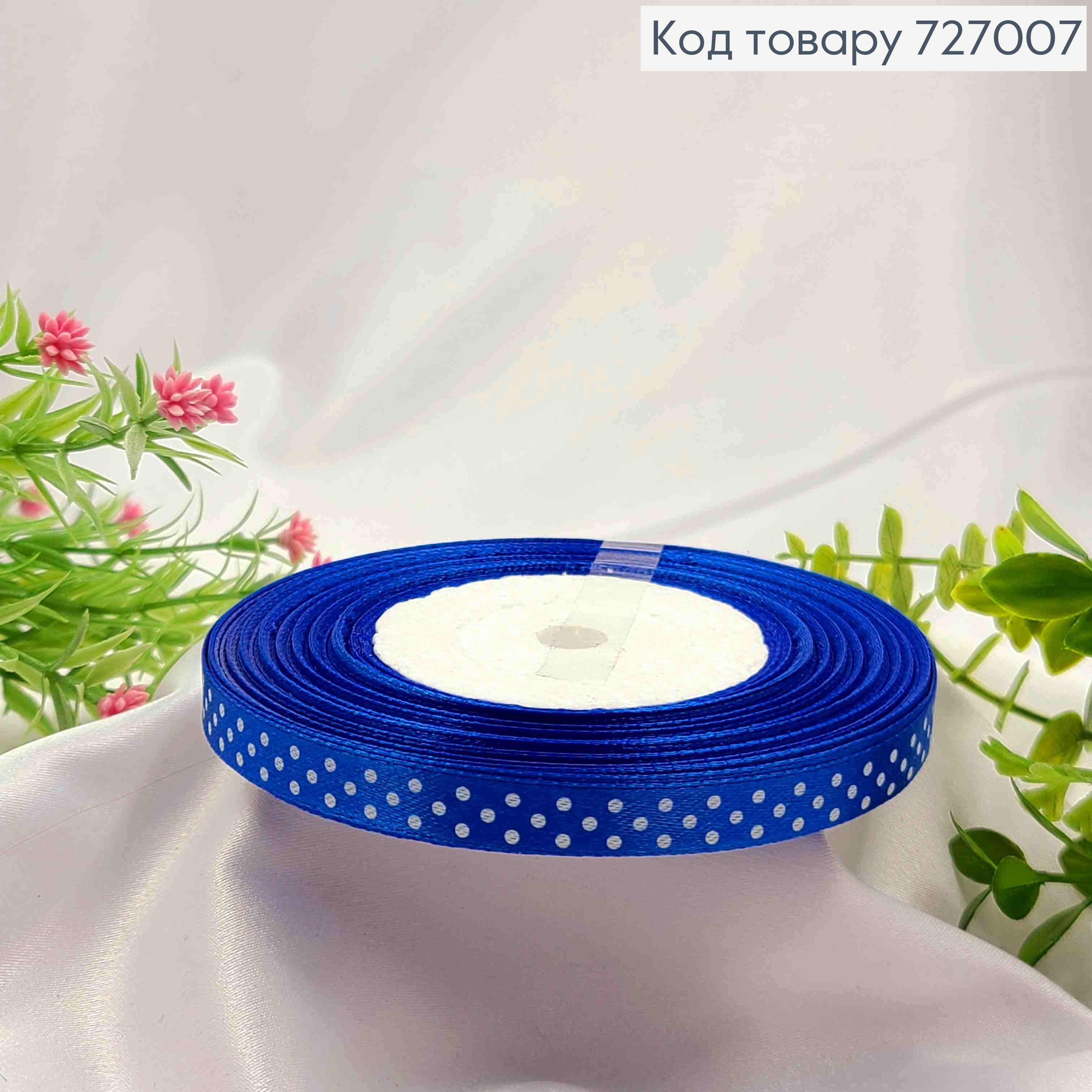 Лента атласная СИНЯЯ в ГОРОШОК, ширина 1см, длина 50 ярдов (45м)