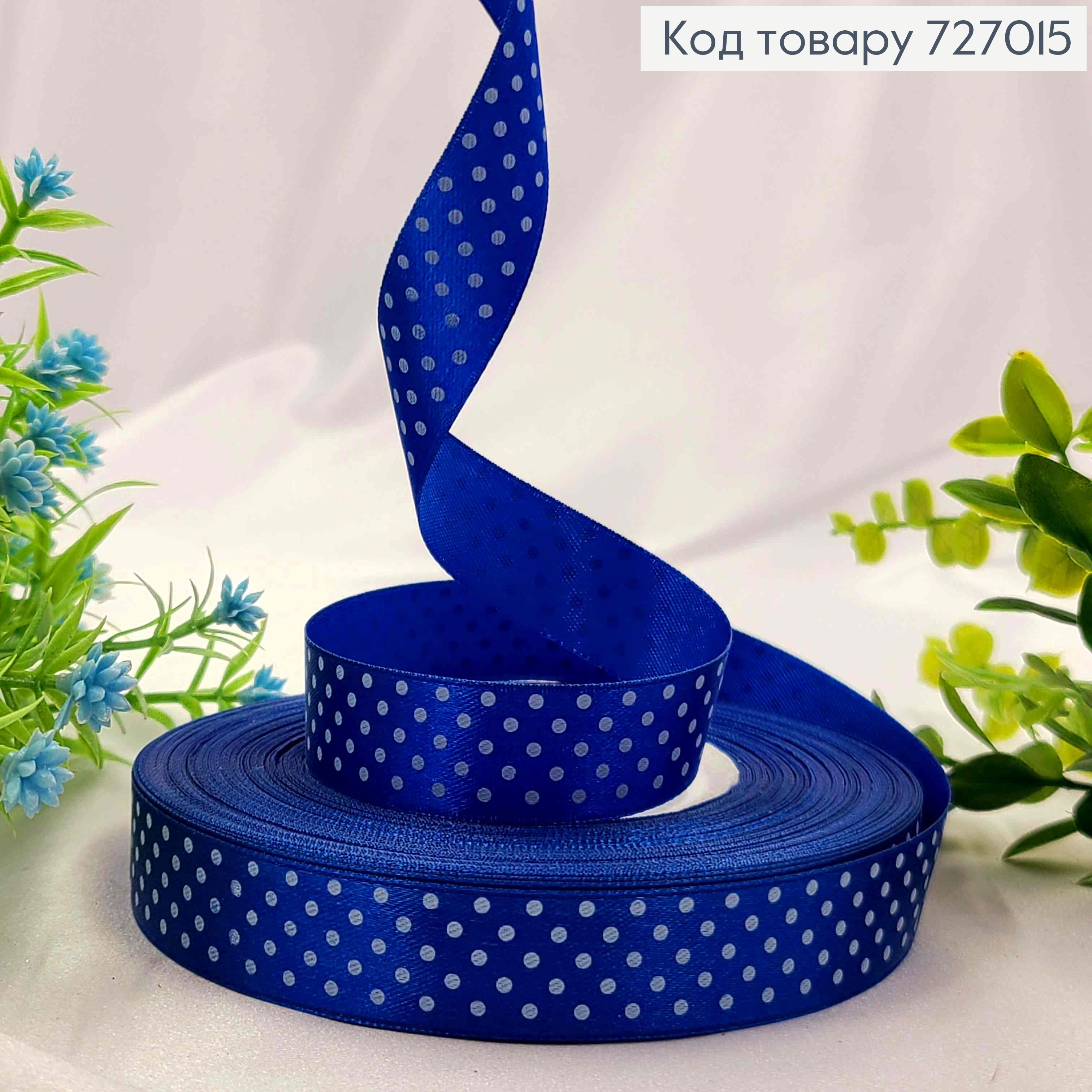 Лента атласная СИНЯЯ в ГОРОШОК, ширина 2см, длина 50 ярдов (45м)