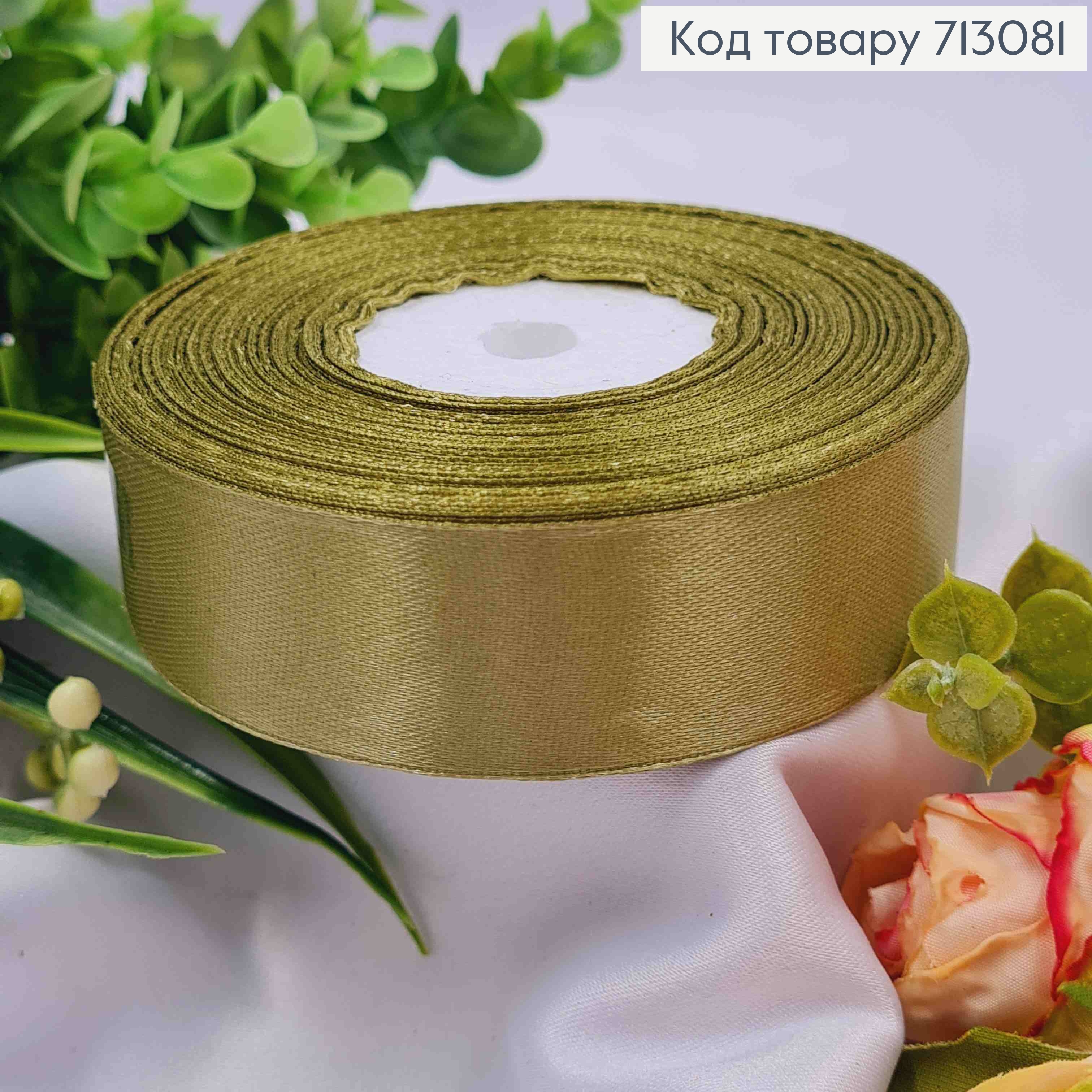 Лента атласная ОЛИВНАЯ (цвет 125), ширина 2,5см, длина 36 ярдов (33м) 713079 фото