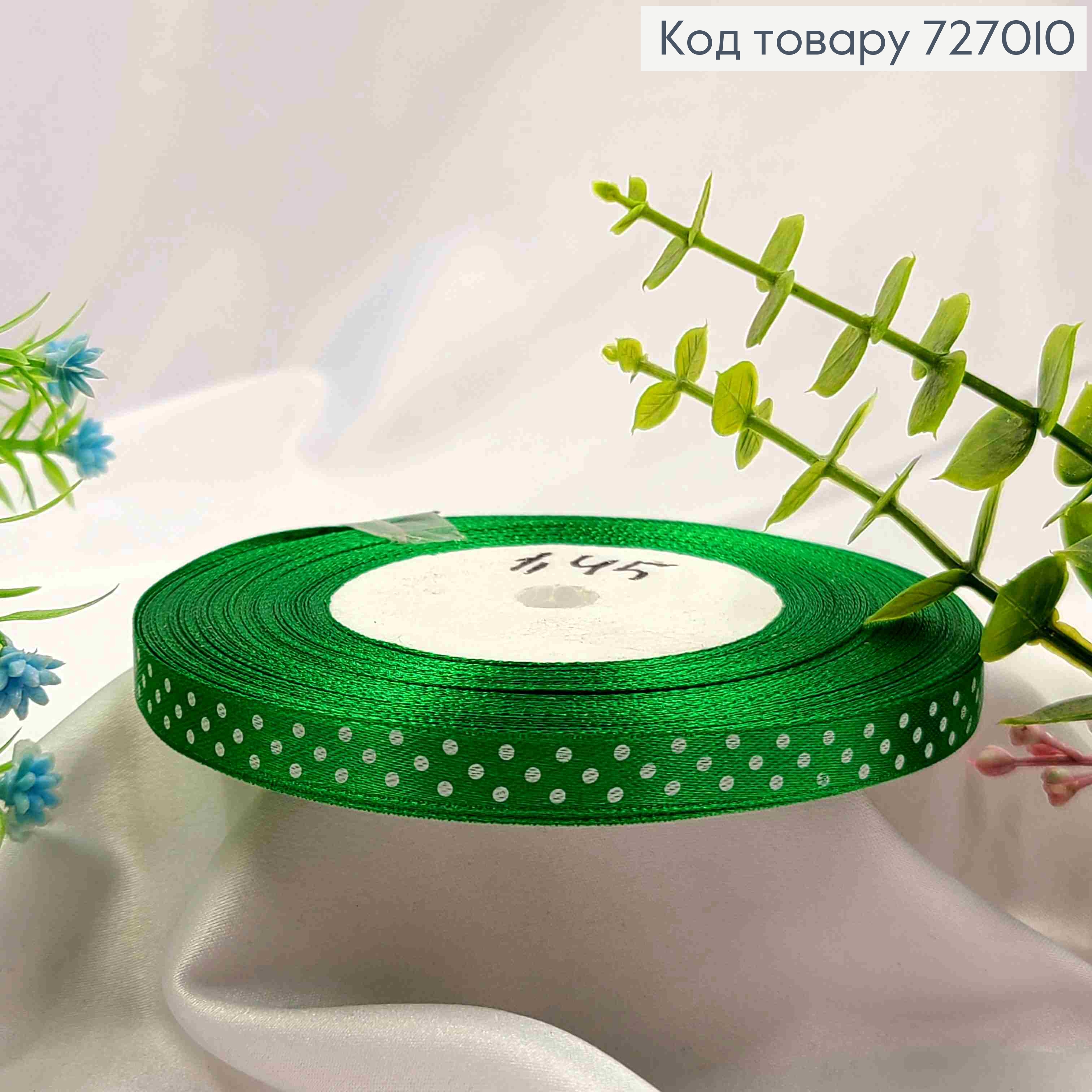 Лента атласная ЗЕЛЕНАЯ в ГОРОШОК, ширина 1см, длина 50 ярдов (45м)