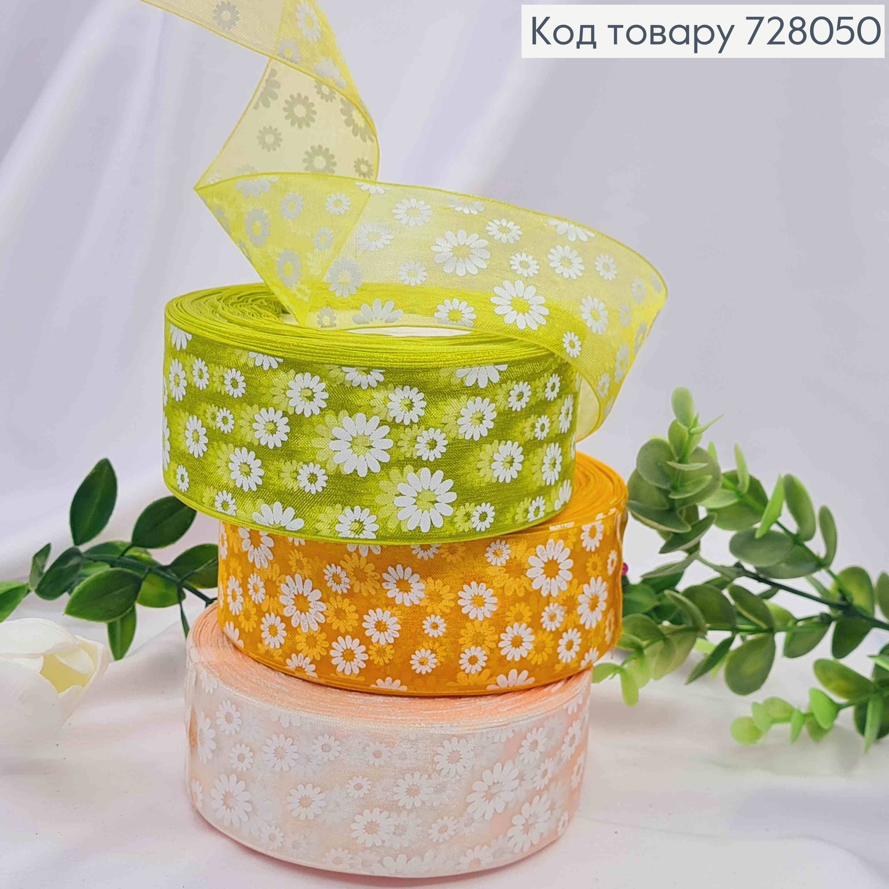 Лента органза, Цвета в ассортименте с принтом "Цветы", шир 4см, длина 50ярдов (45м)