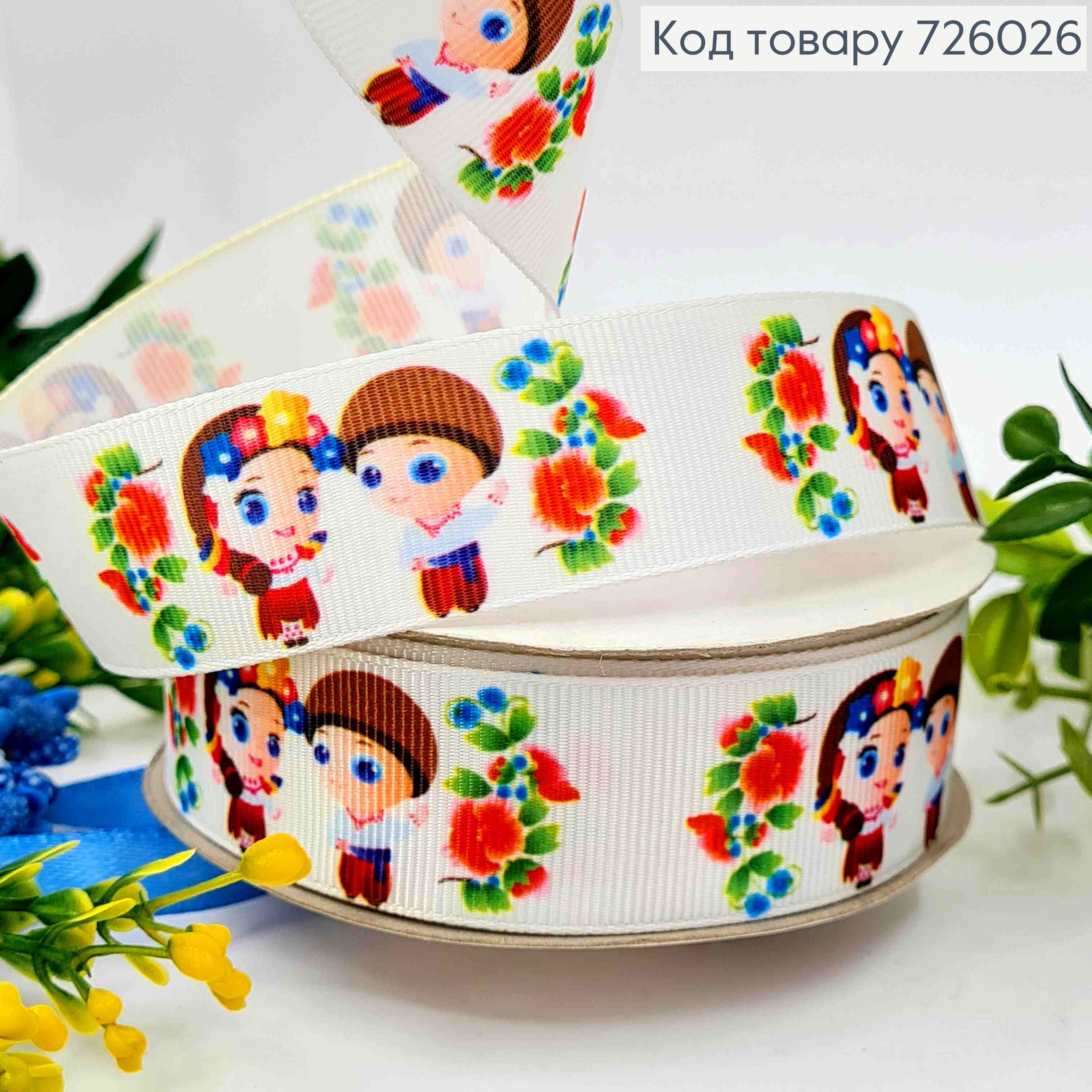 Лента репсовая, БЕЛАЯ с принтом "Казак с Девушкой", ширина 2,5см, длина 25 ярдов(23м)