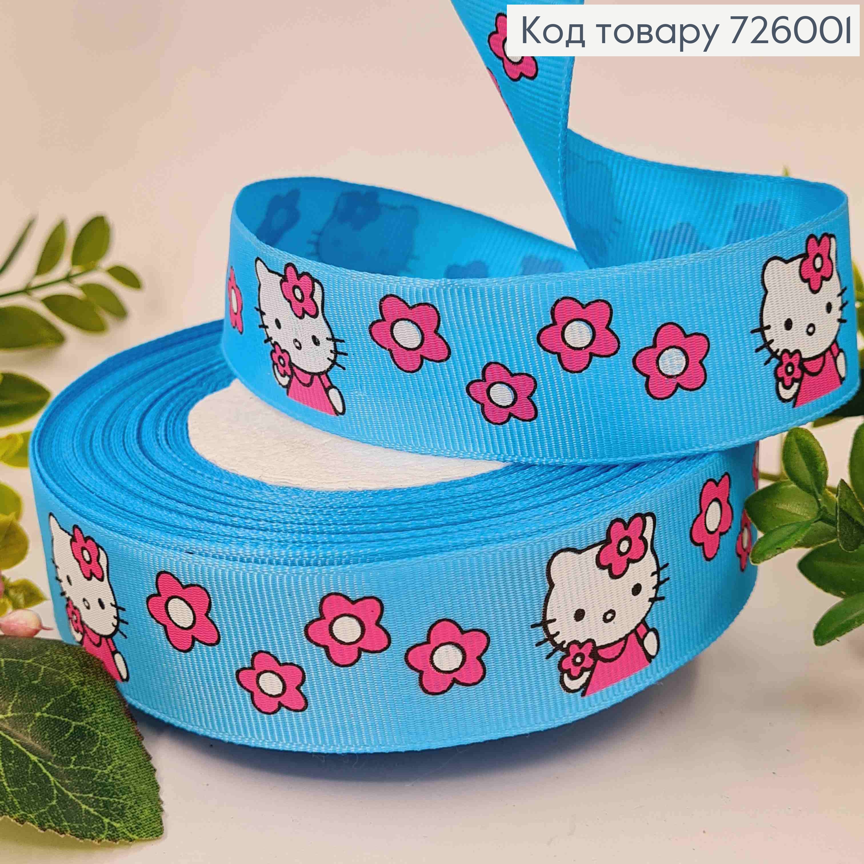 Лента репсовая, ГОЛУБАЯ с HELLO KITTY, ширина 2,5см, длина 25 ярдов (23метра)