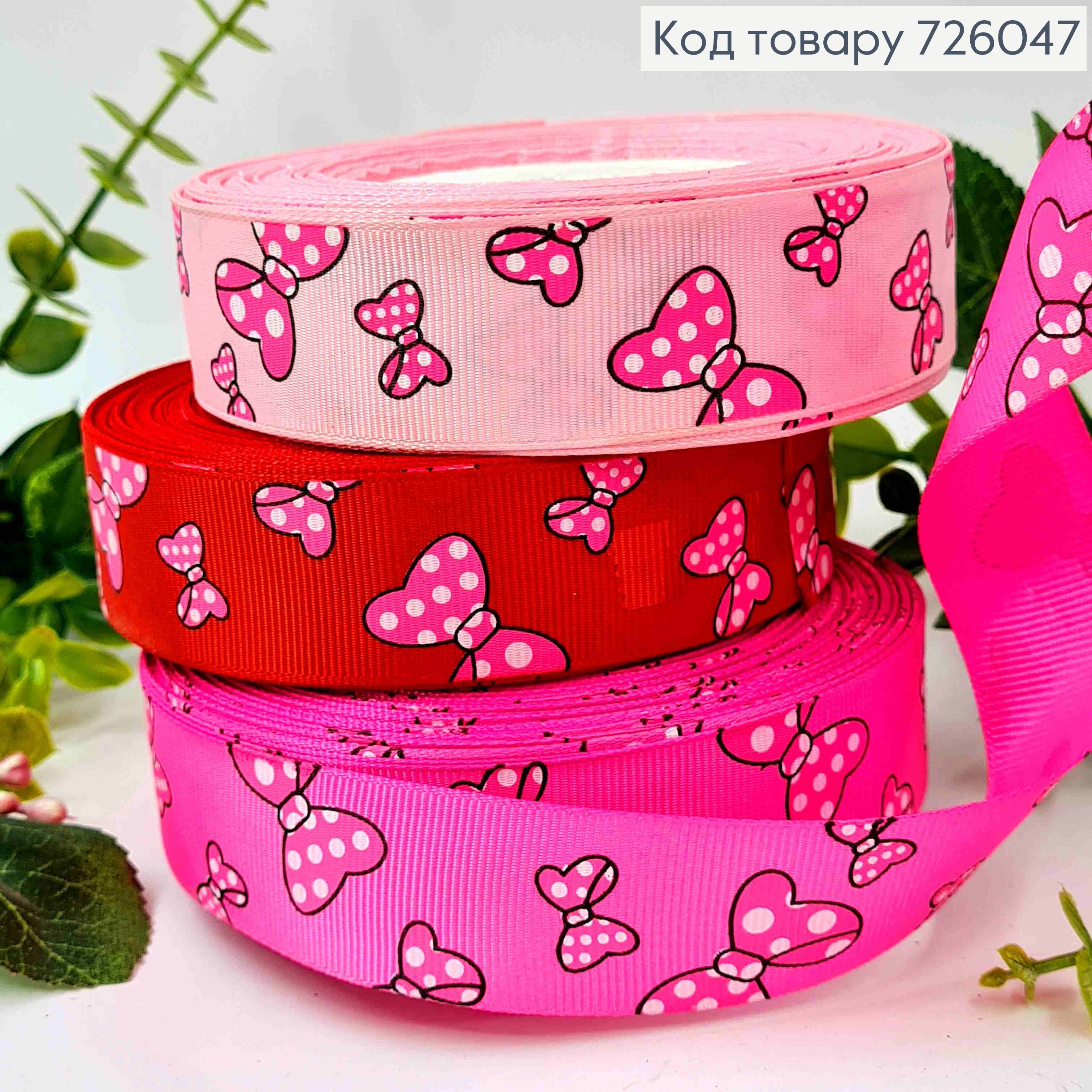 Лента репсовая, КРАСНАЯ/РОЗОВАЯ с принтом "БАНТИК" (в ассорт), шир 2,5см, длина 25 ярдов(23м)
