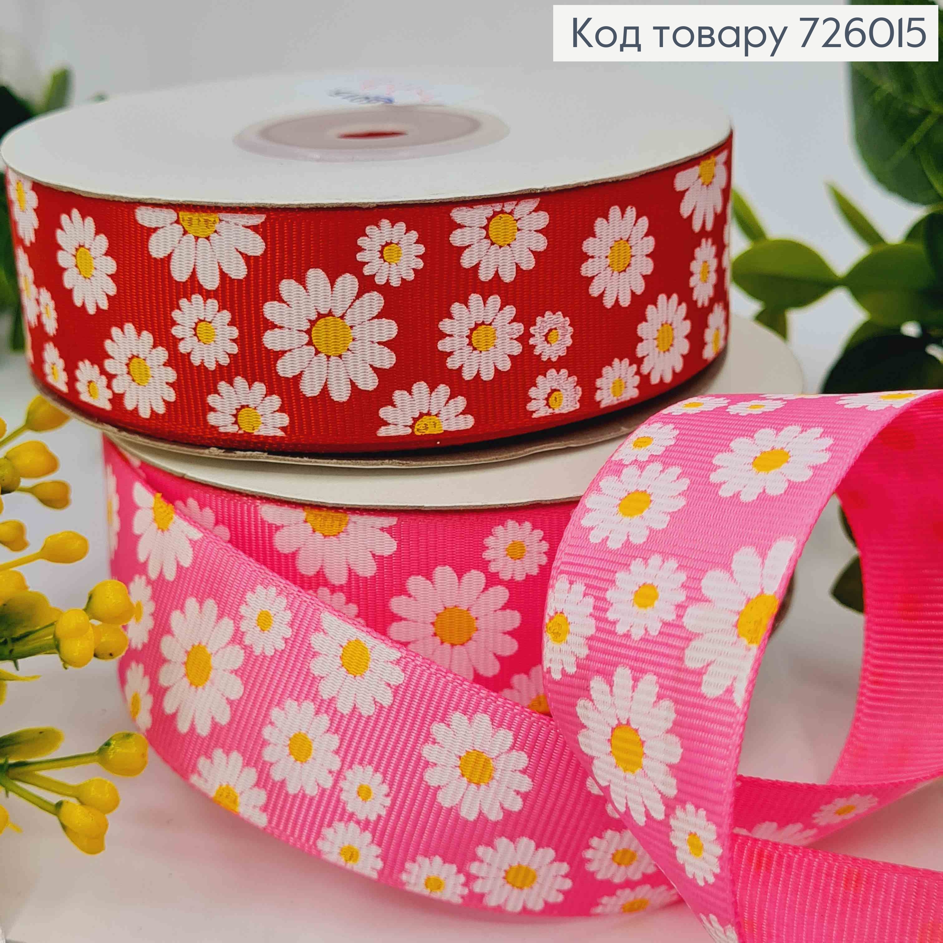Лента репсовая, КРАСНАЯ/РОЗОВАЯ с принтом "Цветы"(в ассорт), шир 2,5см, длина 25 ярдов (23метра)