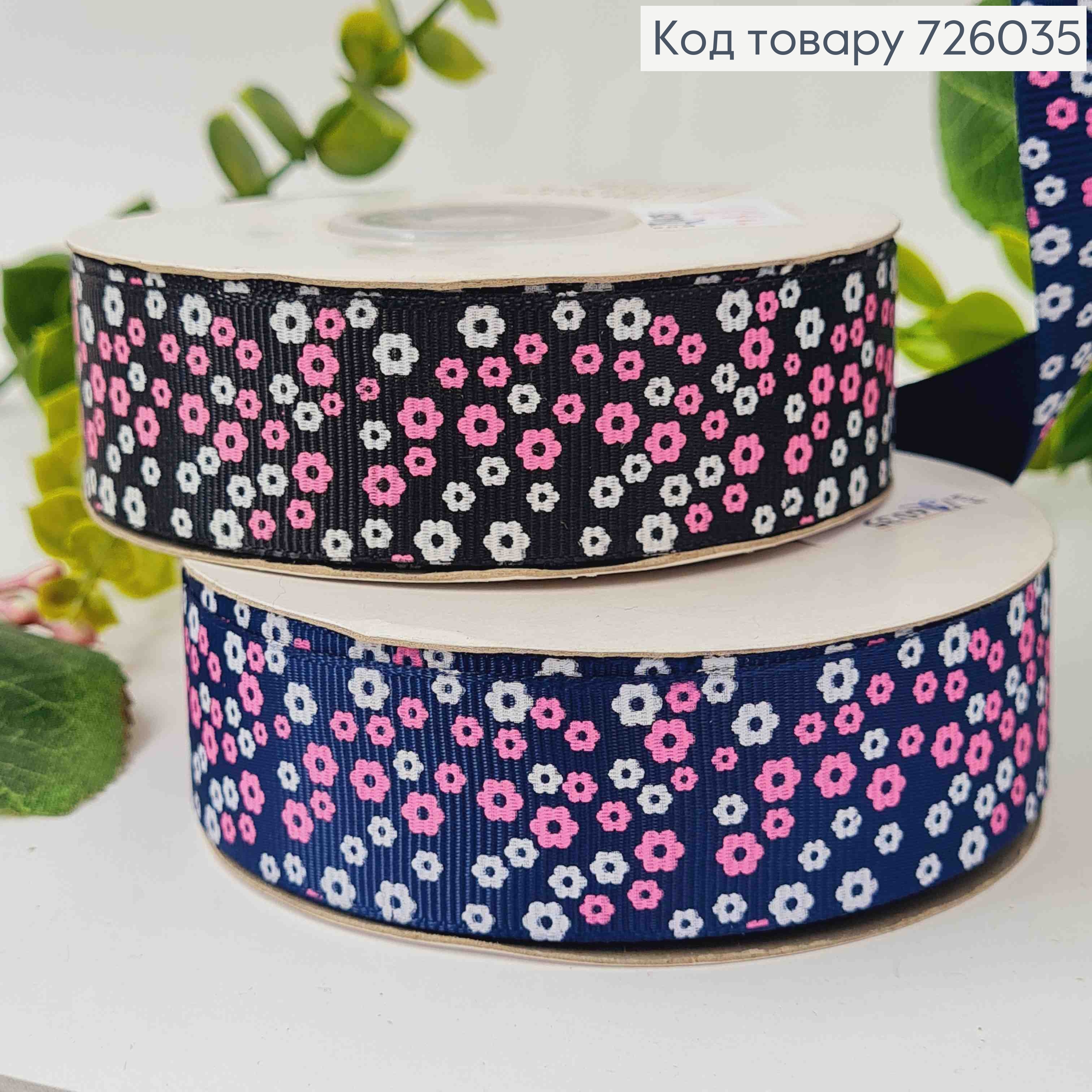 Лента репсовая, с принтом "Цветочки", ширина 2,5см, длина 25 ярдов (23м) 726062 фото