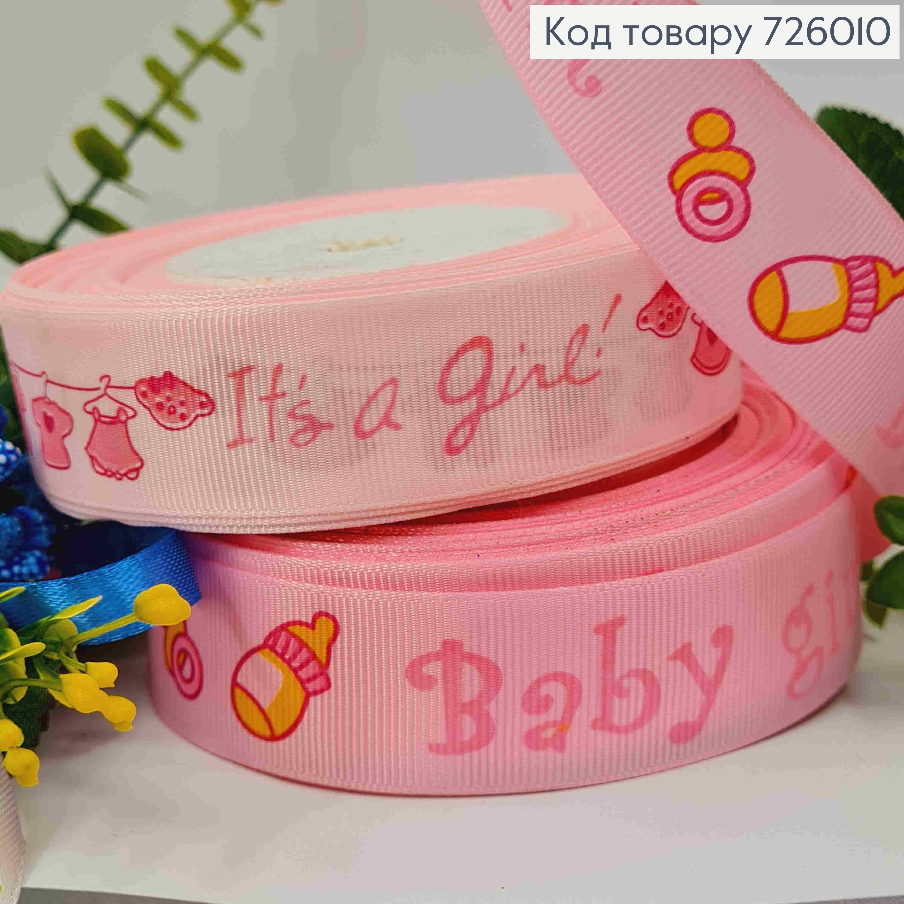 Лента репсовая, РОЗОВАЯ с "Baby girl", "It's a girl" (в ассорт.), шир 2,5см, длина 25 ярдов (23метра)