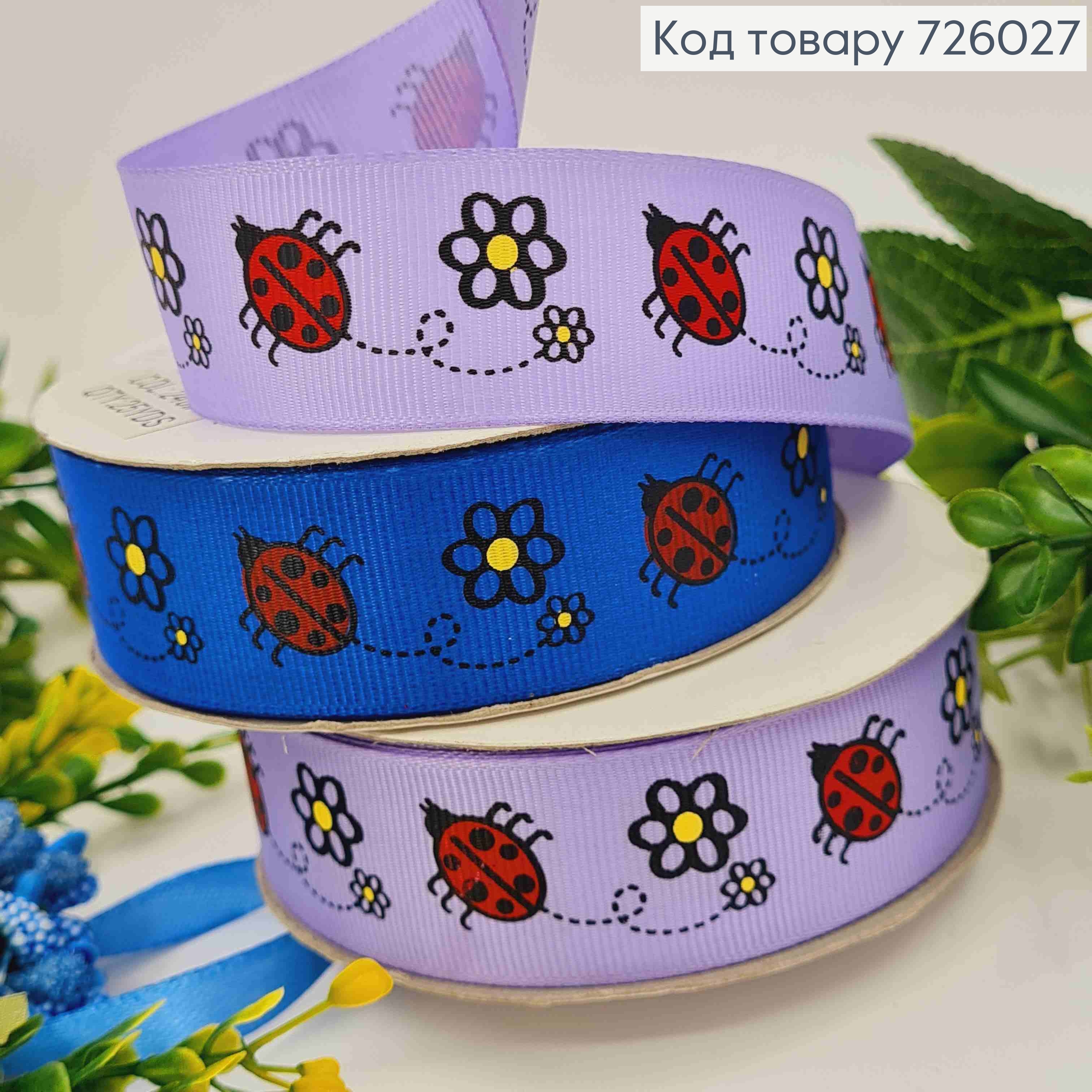 Лента репсовая, СИНЯЯ/ФИОЛЕТОВАЯ с принтом "Бедрик" (в ассорт), ширина 2,5см, длина 25 ярдов(23м)