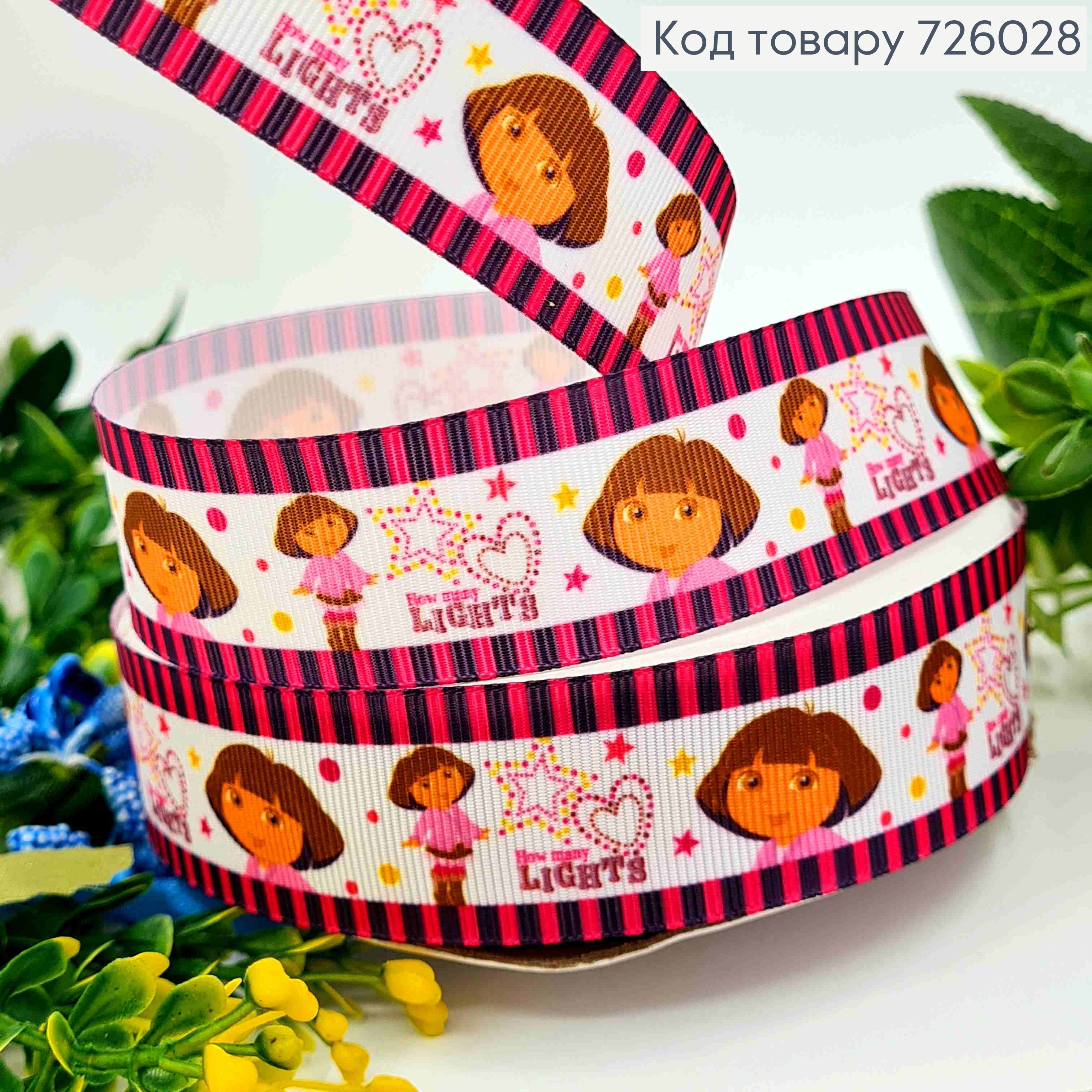 Лента репсовая, с принтом "Дарына путешественница", ширина 2,5см, длина 25 ярдов(23м)