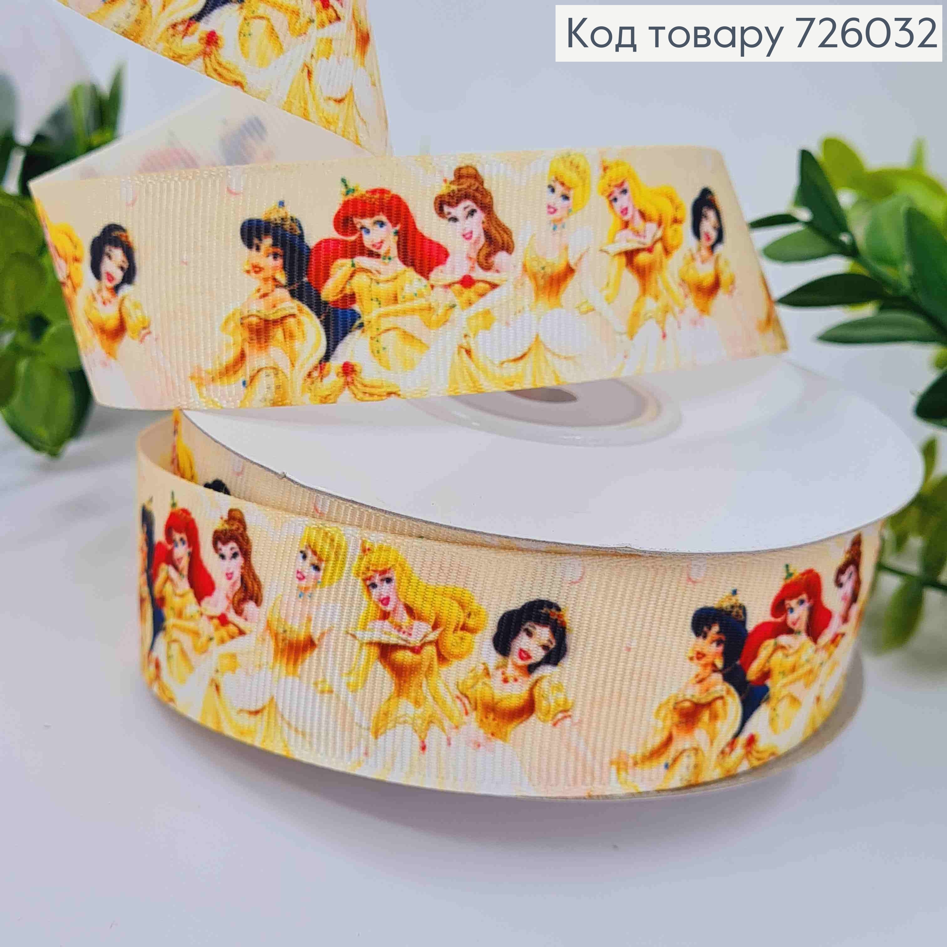 Лента репсовая, с принтом "Диснеевские ПРИНЦЕССЫ", ширина 2,5см, длина 25 ярдов(23м)