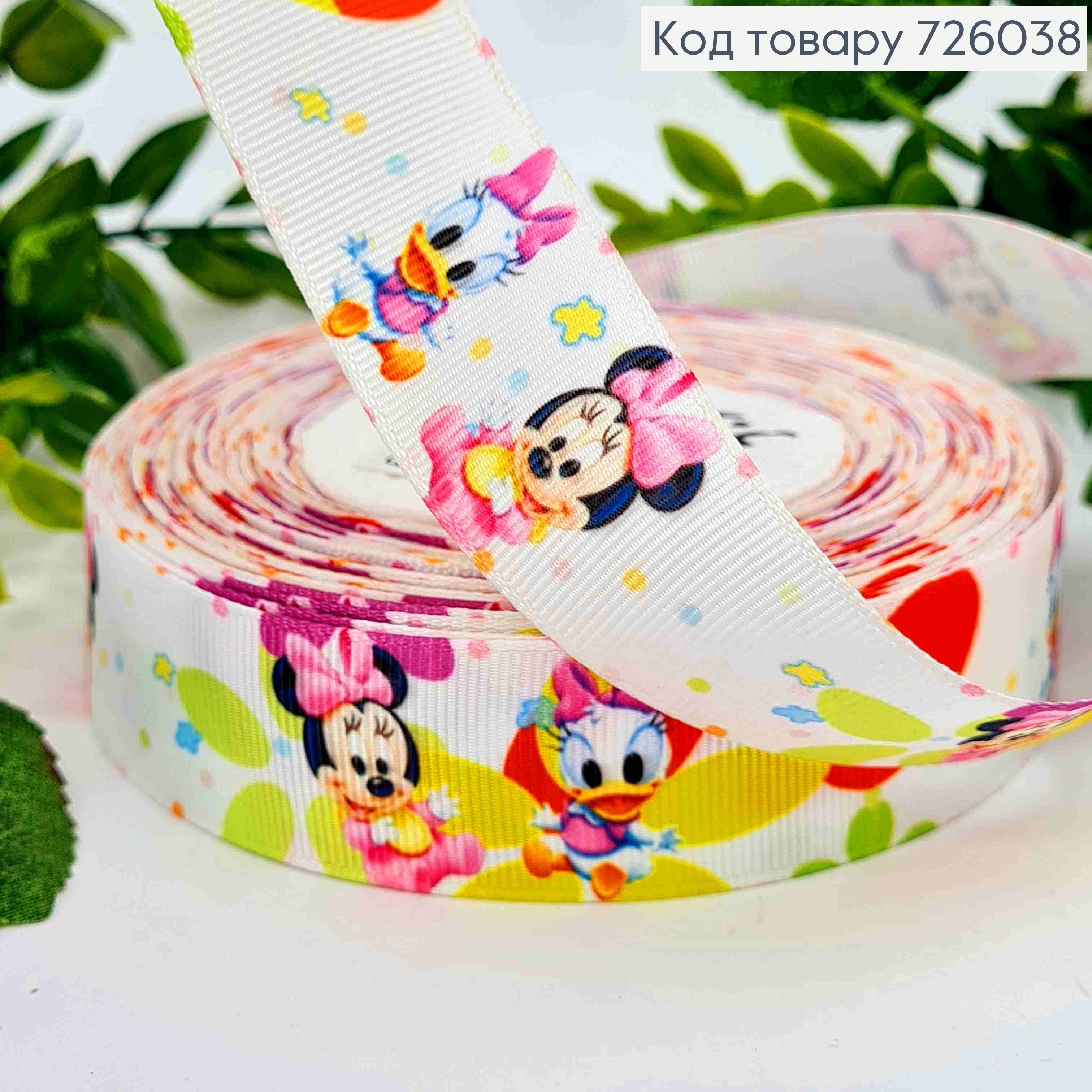 Лента репсовая, с принтом "Диснеевские ПЕРСОНАЖИ", ширина 2,5 см, длина 25 ярдов(23м)