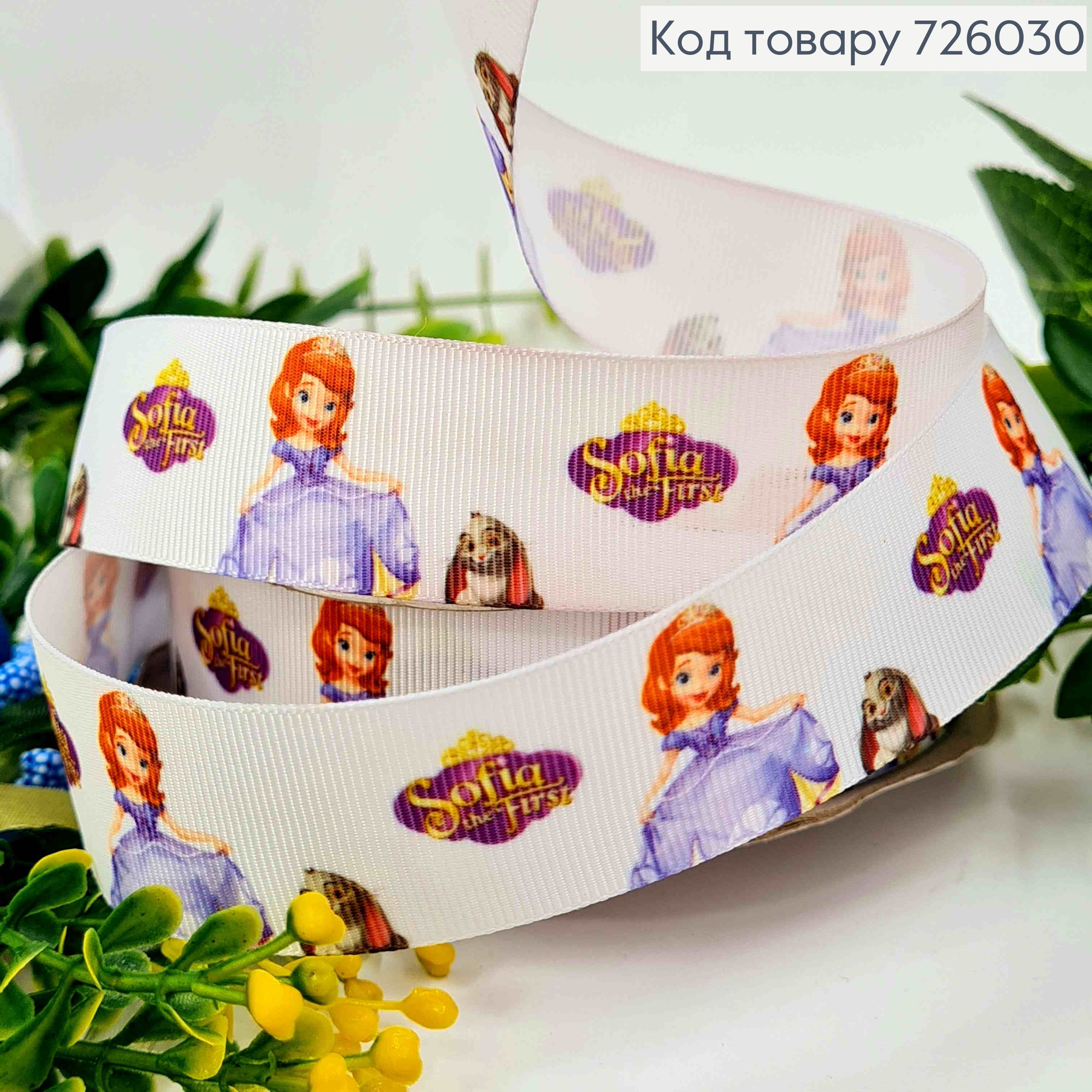 Лента репсовая, с принтом "Принцесса СОФИЯ", ширина 2,5см, длина 25 ярдов(23м)