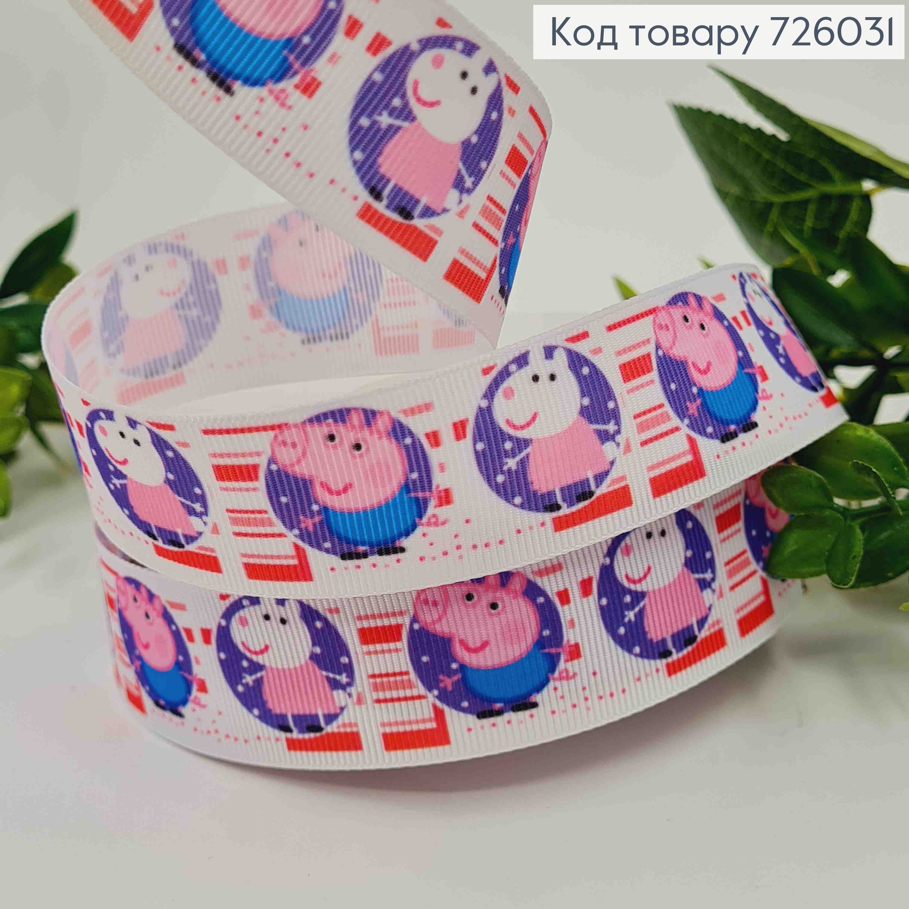 Лента репсовая, с принтом "Свинка ПЕППА", ширина 2,5 см, длина 25 ярдов(23м)