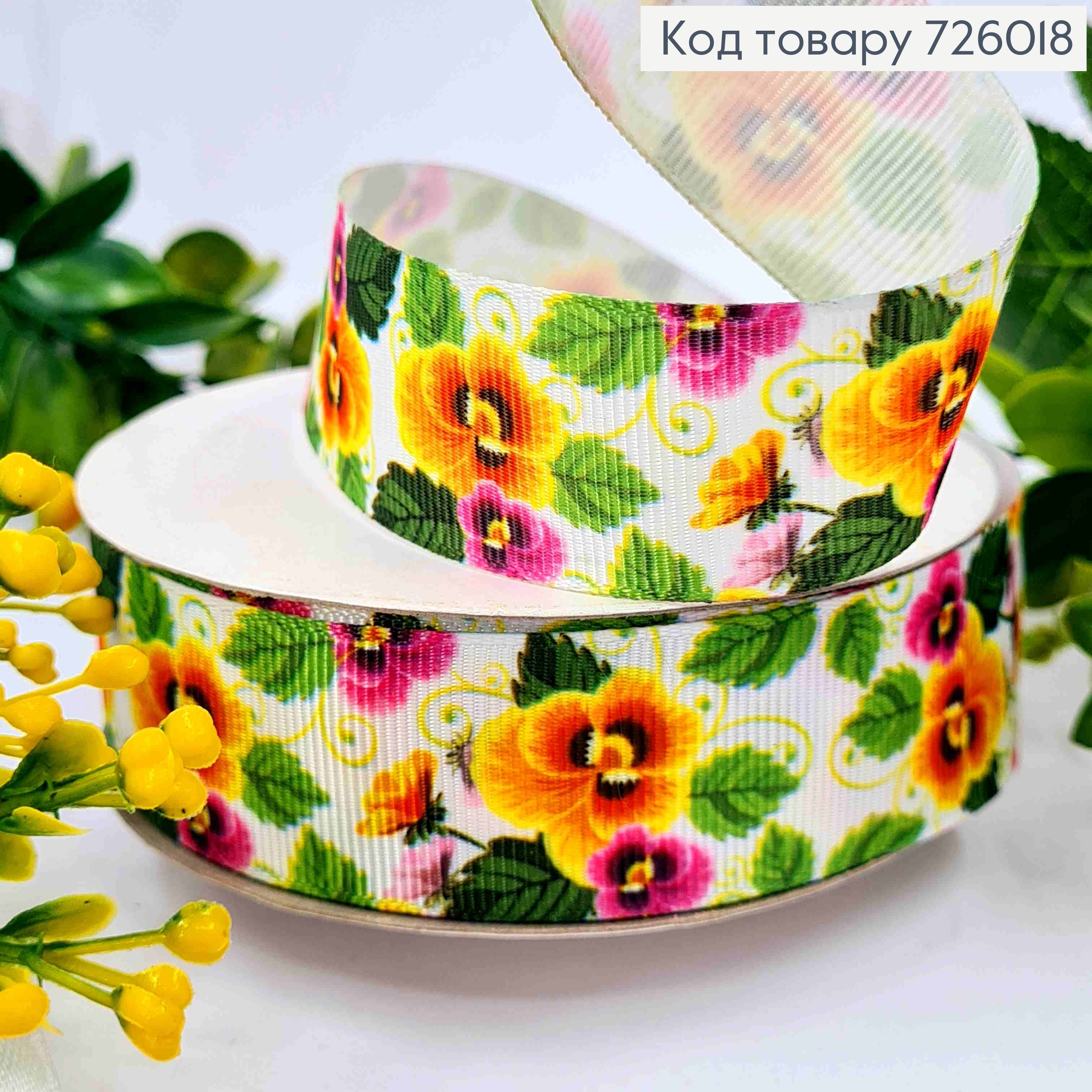 Стрічка репсова, з принтом "Весняні Квіти", ширина 2,5см, довжина 25 ярдів (23метри)