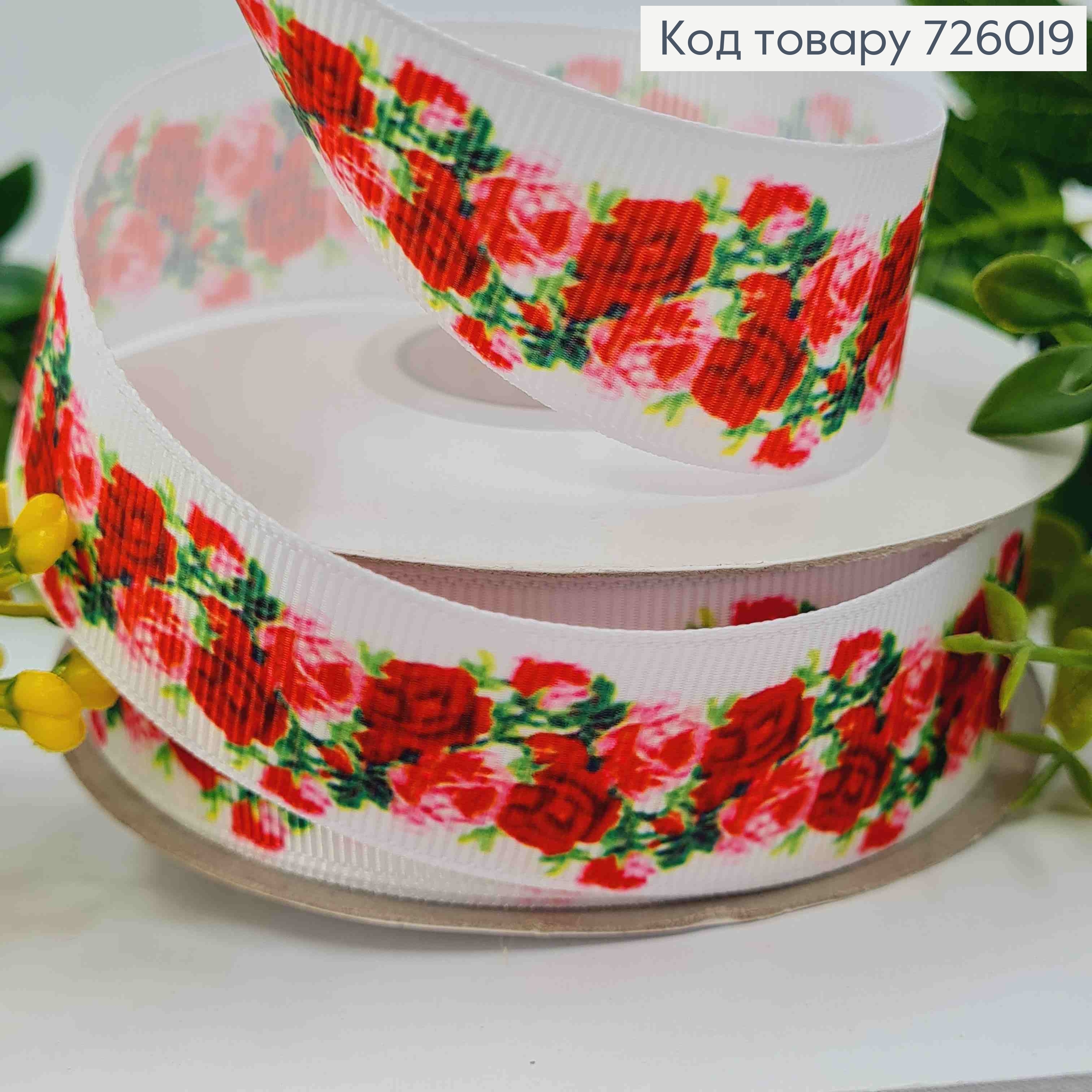 Стрічка репсова, з принтом "Весняні Квіти", ширина 2,5см, довжина 25 ярдів (23метри)