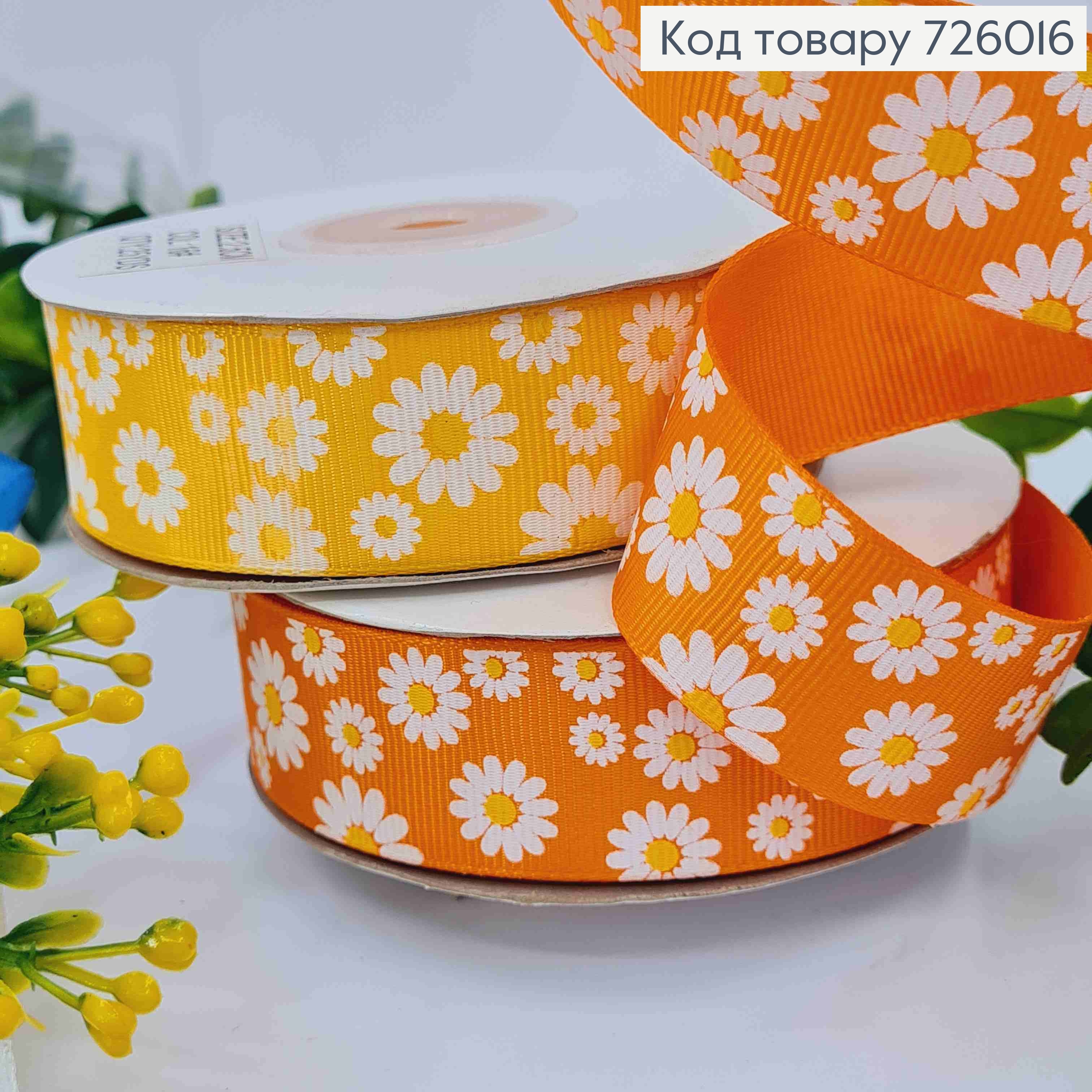 Лента репсовая, ЖЕЛТАЯ/Оранжевая с принтом "Цветы"(в ассорт), шир 2,5см, длина 25 ярдов (23метра)
