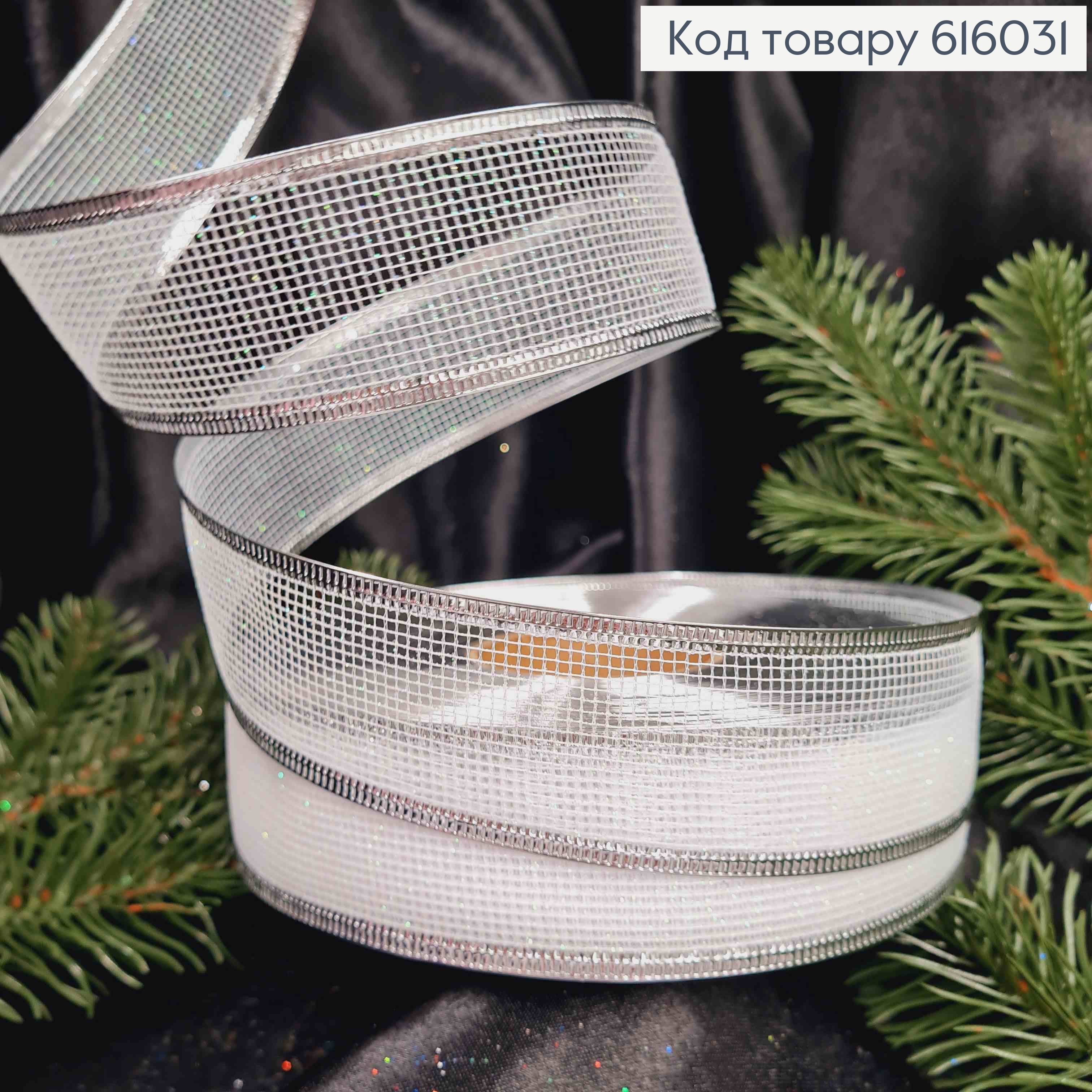 Лента-сетка Блеск БЕЛАЯ, ширина 3,5см, длина 50 ярдов (45м)