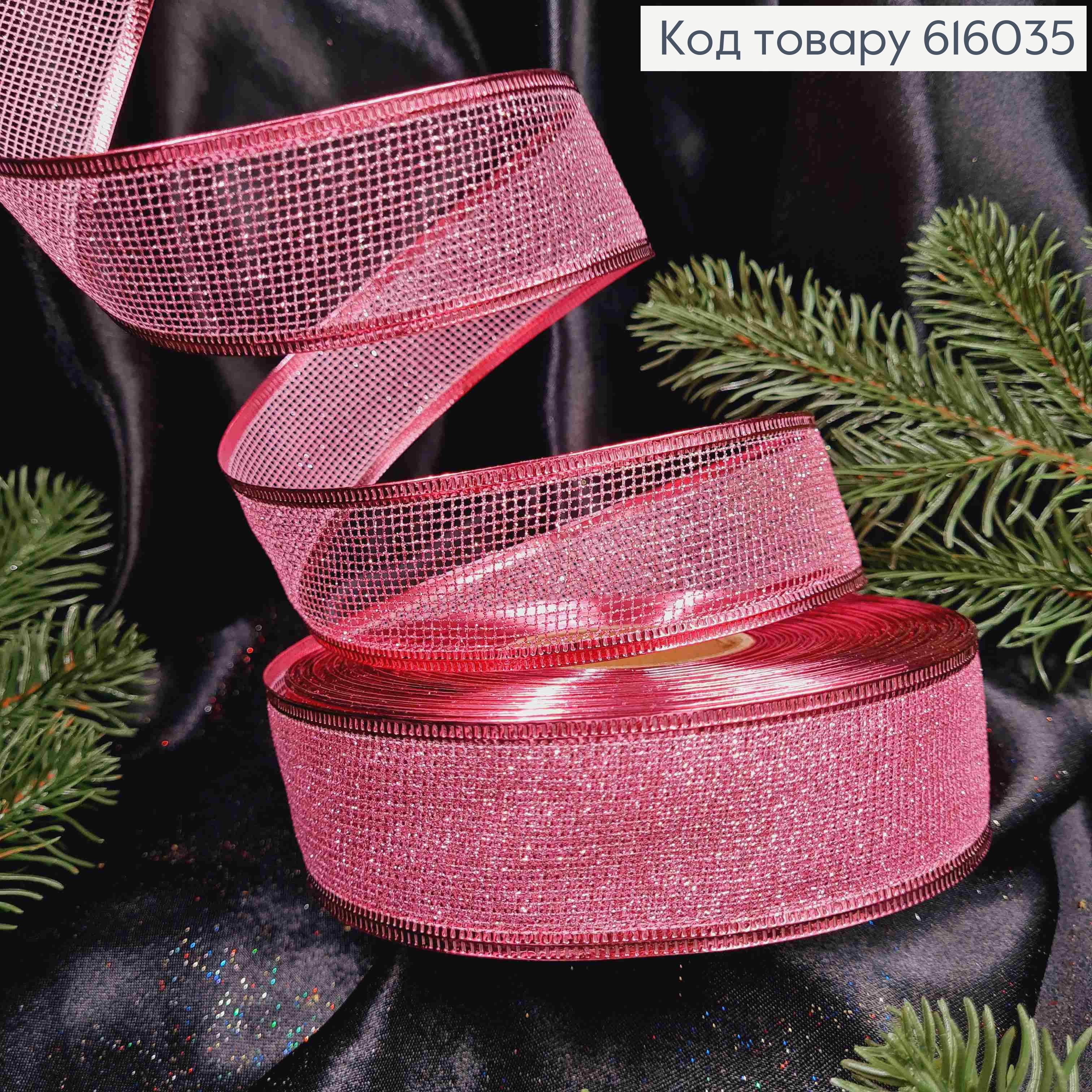 Лента-сетка Блеск РОЗОВАЯ, ширина 3,5см, длина 50 ярдов (45м)