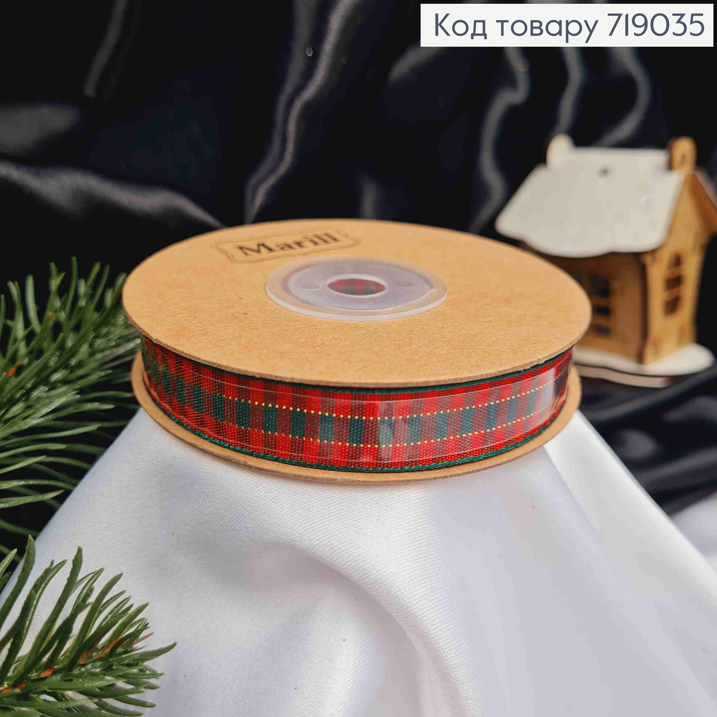 Лента с люрексом НОВОГОДНЯЯ в Клетке, ЗЕЛЕНО-КРАСНАЯ, ширина 1,5см, длина 20 ярдов (18м)