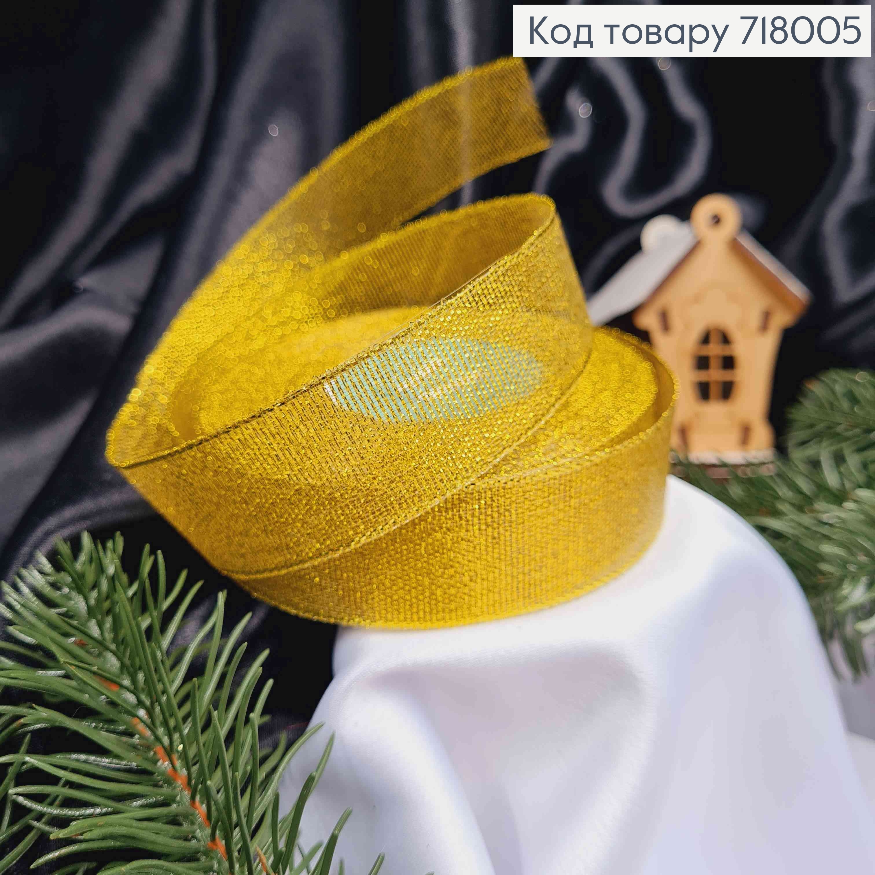 Лента из парчи Золотая, ширина 2,5см, длина 25 ярдов (23м)