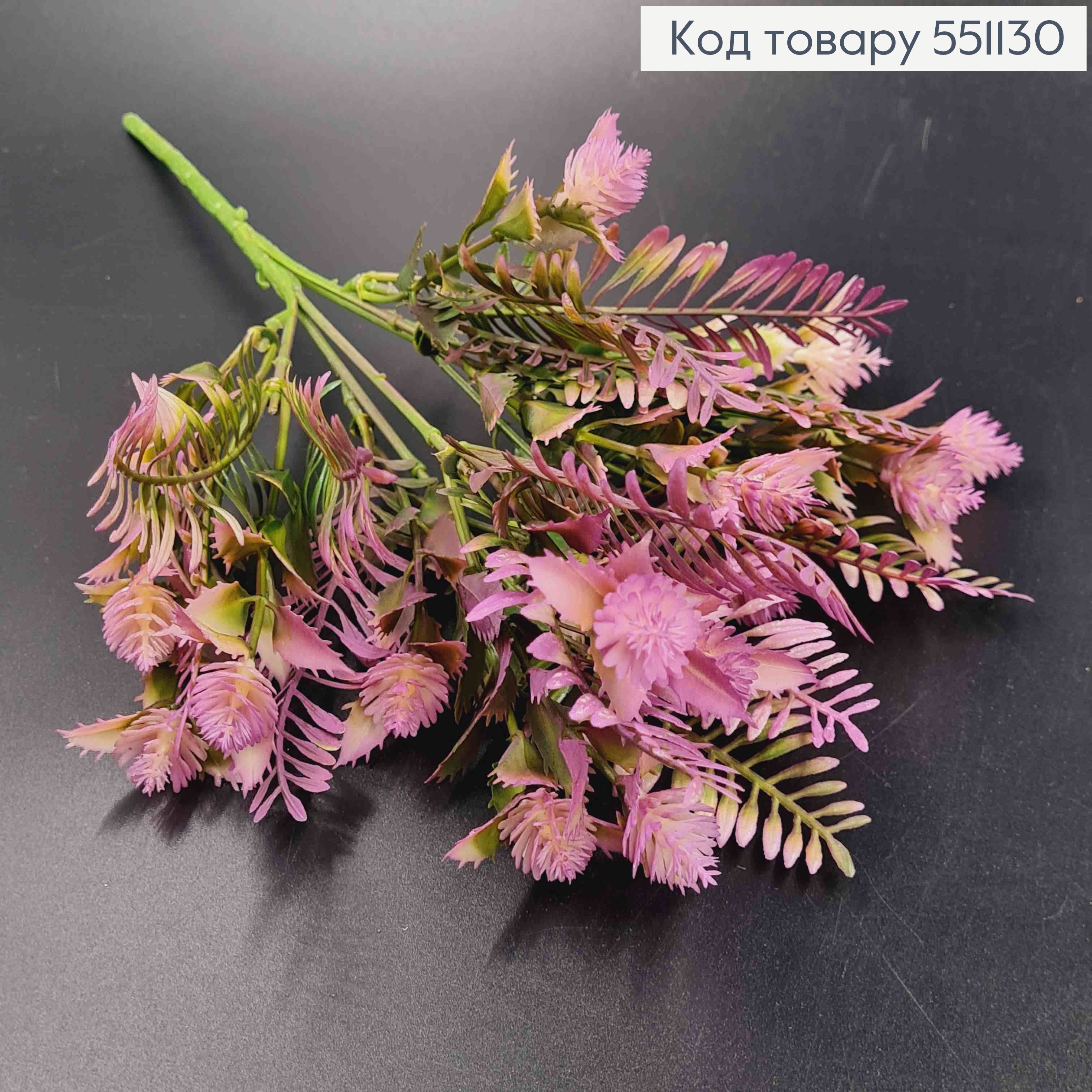 Искусственная декоративная зелень, 5 веточек, Папоротник с фиолетовым приложением, на металлическом стержне, 30см